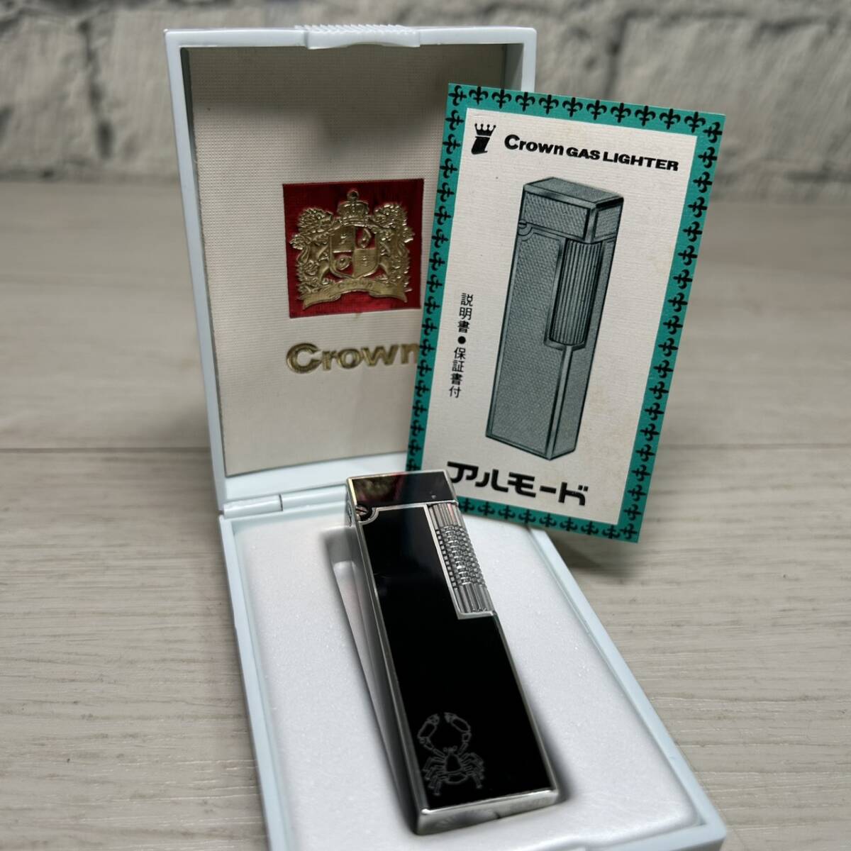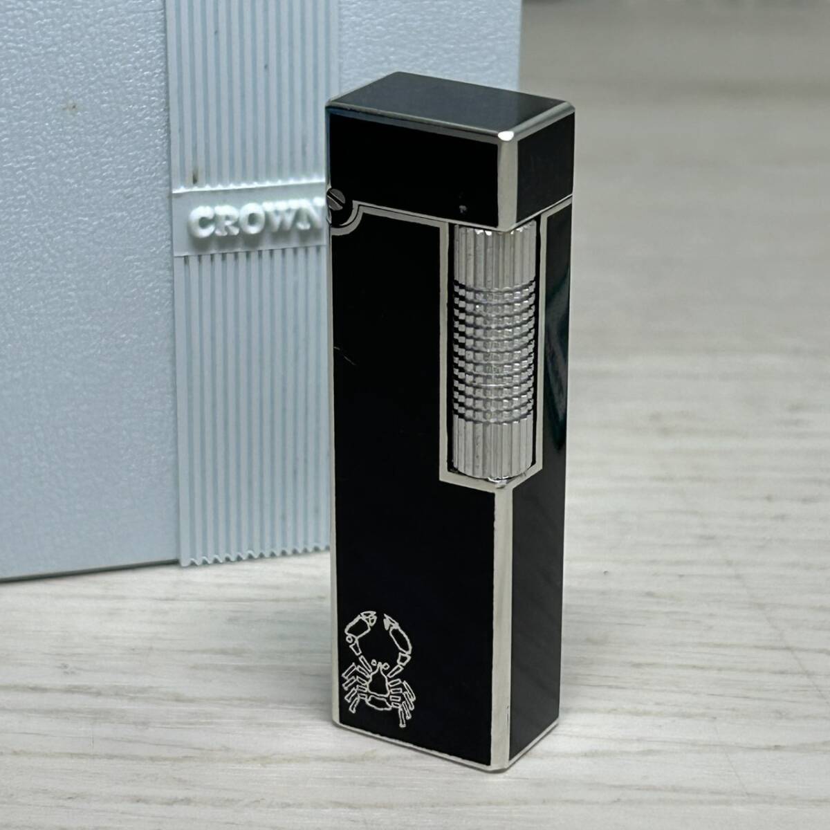 ●【YH-4314】保管品 CROWN ALUMODE クラウン アルモード スリム ローラー ガスライター ブラック