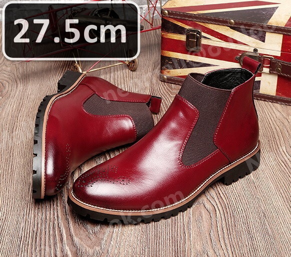 メンズ ショートブーツブーツ 27.5cm レッド PUレザー ミリタリーブーツ アウトドアシューズ 【n019】