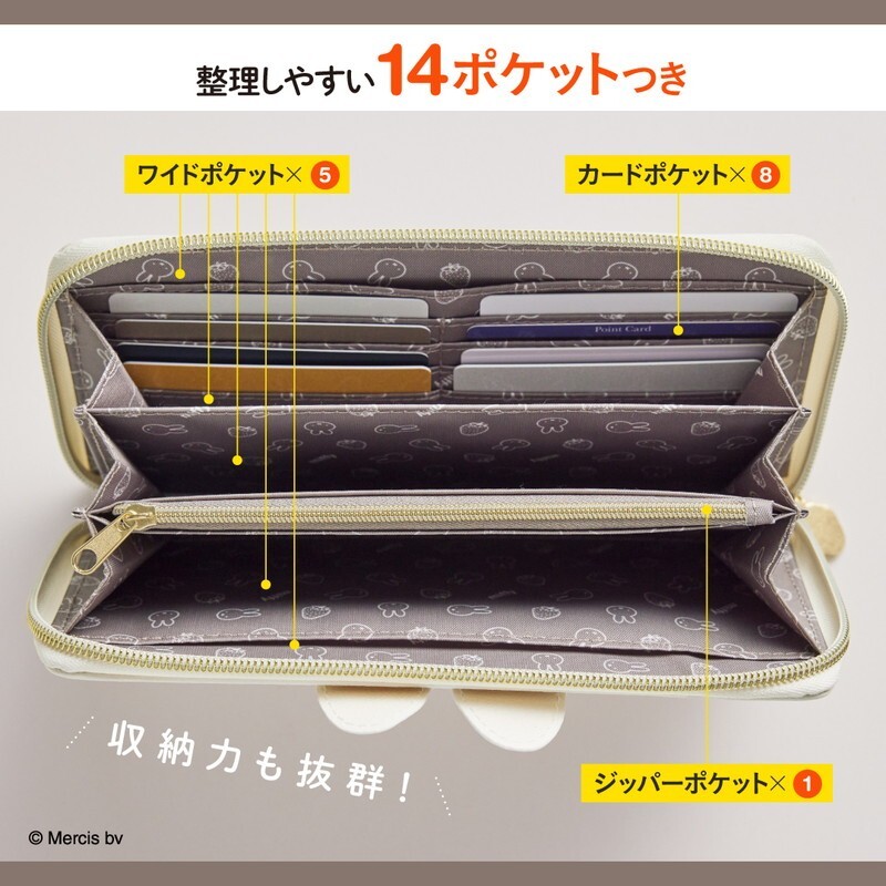 2 190 miffy 耳つき14ポケット長財布 ホワイトver. 送料320円