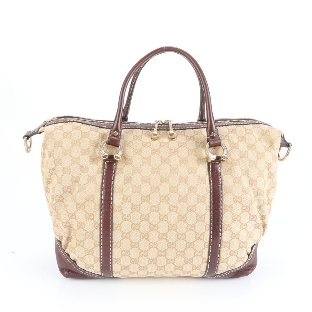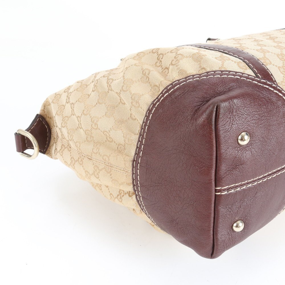 1円■美品■グッチ■GG キャンバス レザー トート バッグ ボストン 肩掛け ショルダー ハンド A4 ブラウン 189892 レディース ECE CX22-4