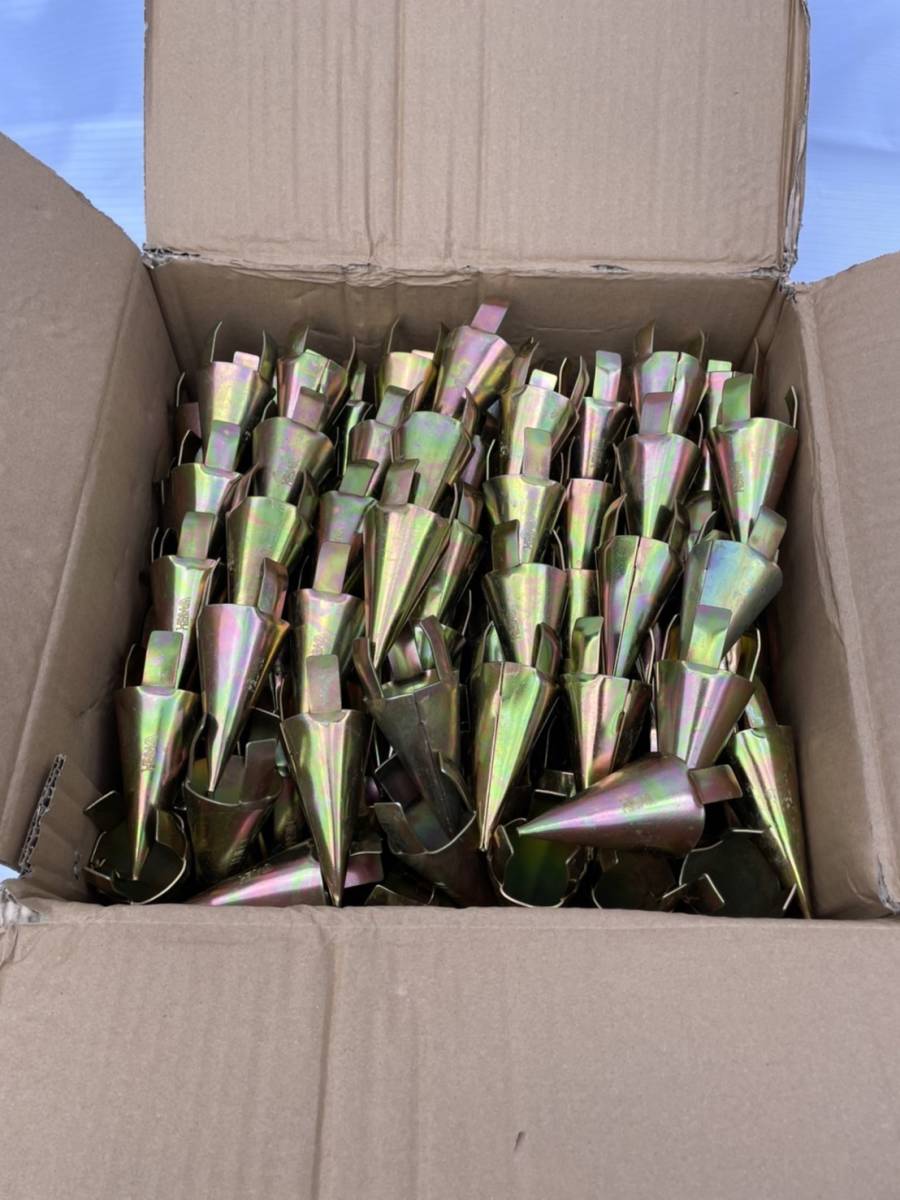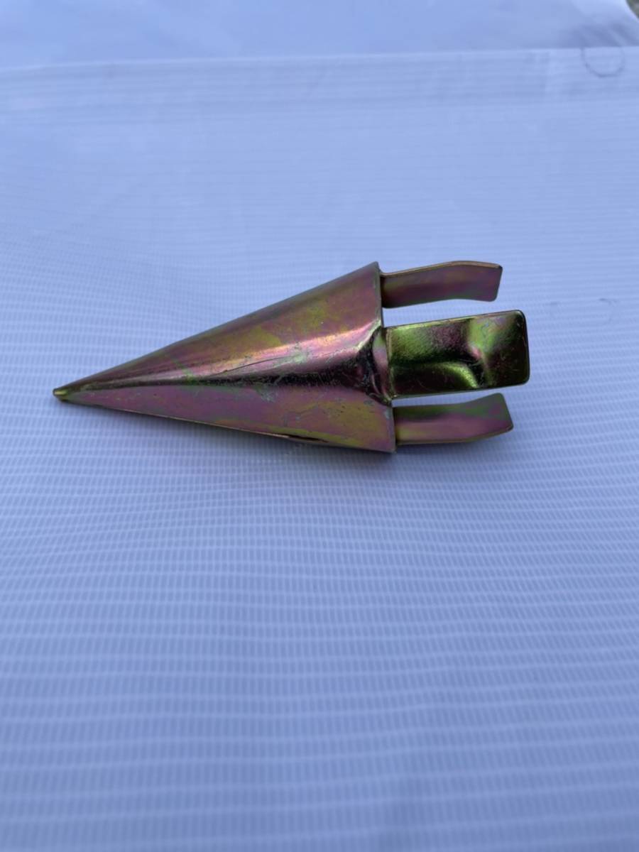 単管パイプに差して杭を打つのに使用するの先端の金物です。