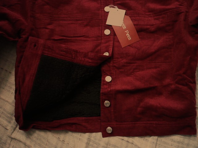 半額以下★PETIT PETIT★裏ボアコーデュロイジャケット ロゴ刺繍DOG  極厚   ショート  エンジ