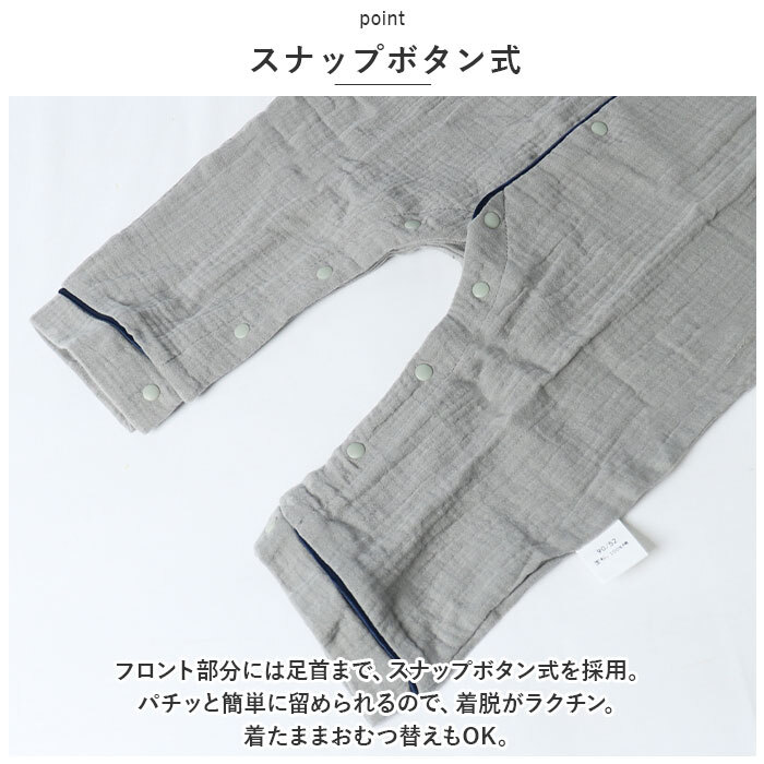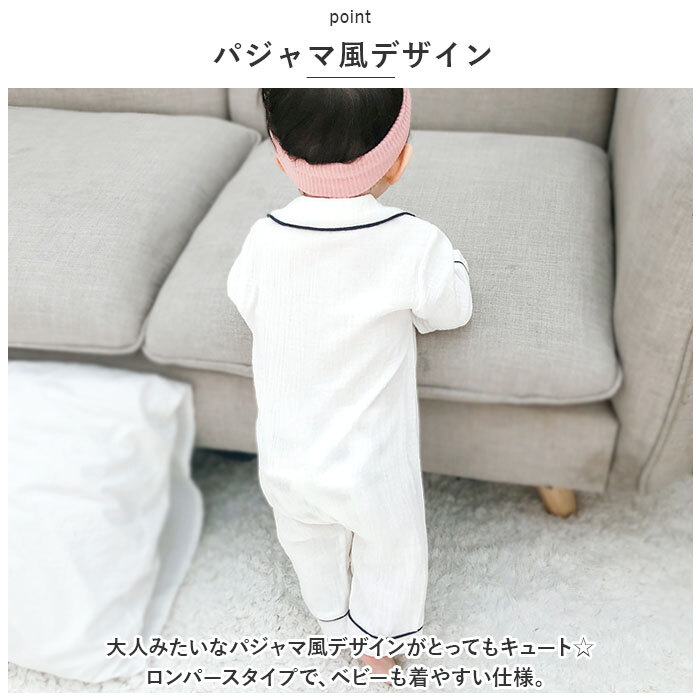 | 商品説明 | ・・パジャマ風ロンパースで、ねんねの時間も可愛く過ごす♪ベビー パジャマが登場。 ・【パジャマ風デザイン】 ・大人みたいなパジャマ風デザインがとってもキュート☆ロンパースタイプで、ベビーも着やすい仕様。 ・【スナップボタン式】 ・フロント部分には足首まで、スナップボタン式を採用。パチッと簡単に留められるので、着脱がラクチン。着たままおむつ替えもOK。 ・【優しい素材】 ・コットンを使用した優しい肌触りの素材を使用。ベビーのお肌にも安心。寝汗も吸収してくれるので、リラックスタイムも快適に過ごせる。 ・【ロングシーズン使える】 ・薄手の長袖長ズボンなので、季節の変わり目から秋冬春とロングシーズン使える。寒い季節はインナーやスリーパーなどと合わせるとGOOD。 ・【男の子も女の子もOK】 ・男の子も女の子も似合う、シンプルなデザイン♪ギフトにもオススメ☆ |