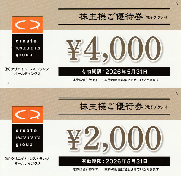 ★追跡送料込み  クリエイト・レストランツ 株主優待券 6000円分 2026/5/31まで