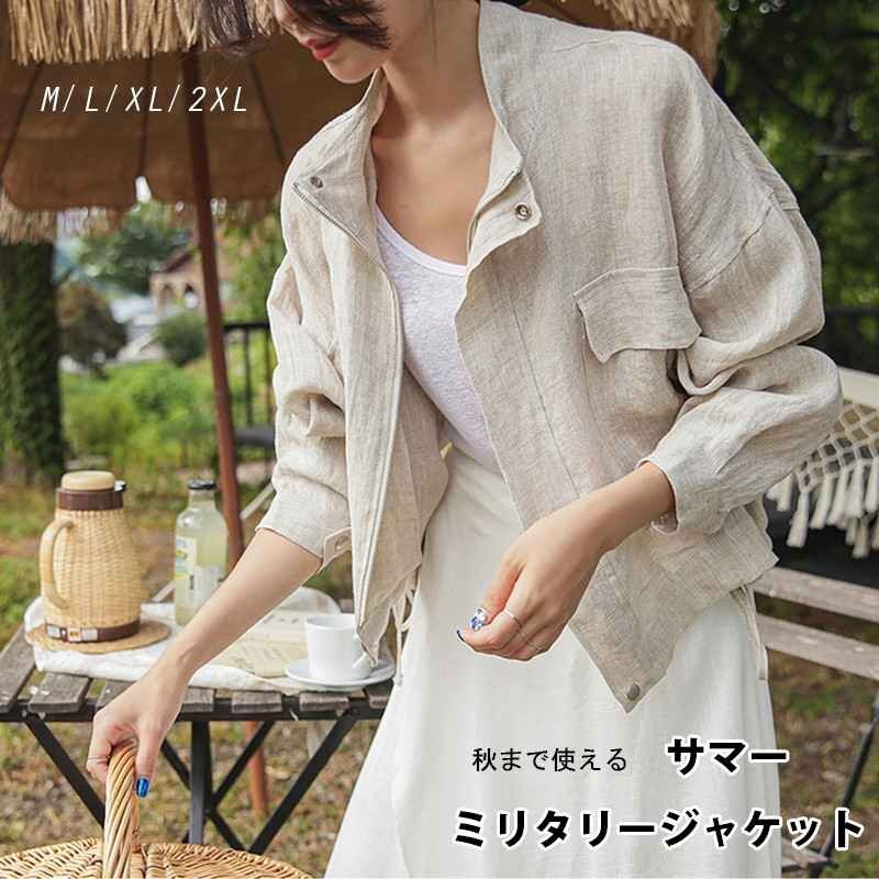 トレンド感満載、綿麻の清涼感のある素材を使用。大きめのポケットデザインでサファリ感ありのサマーミリタリージャケットです。