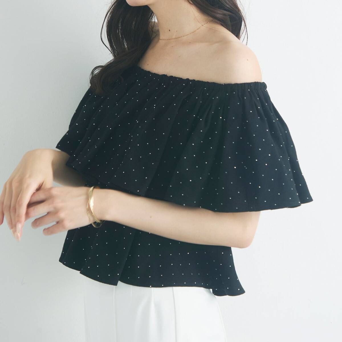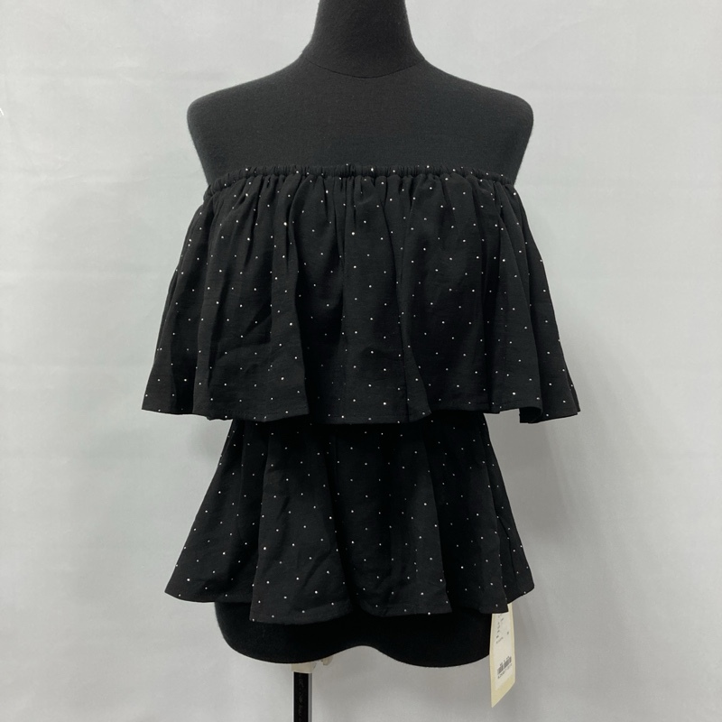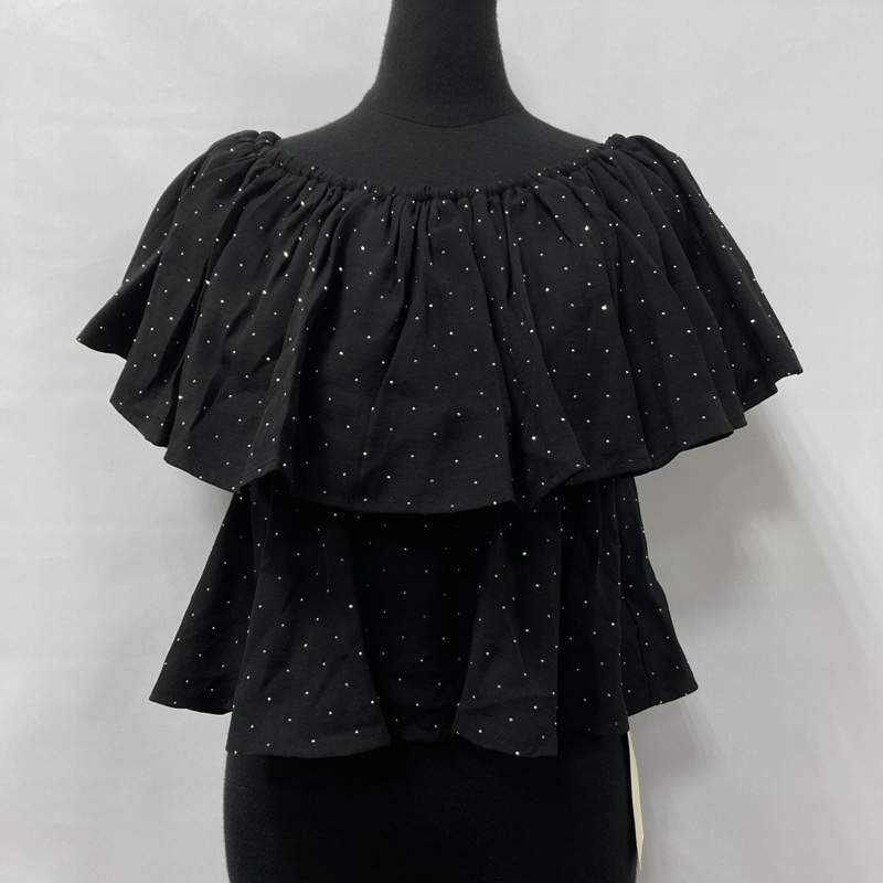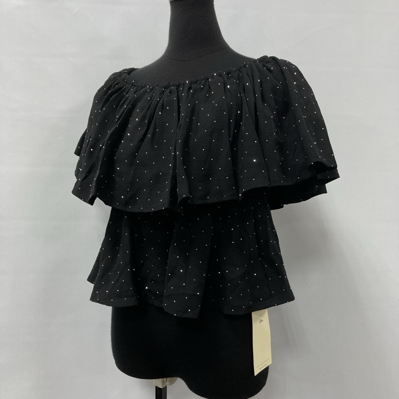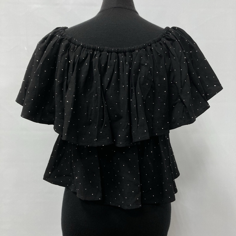 Olu./オルドット/新品タグ付き/ラインストーンオフショルダートップス/2WAY/2段フリル/フリーサイズ/ブラック