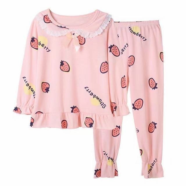 パジャマ 子供服 女の子 長袖 リボン いちご ピンク ルームウェア バスローブ 上下セット 150