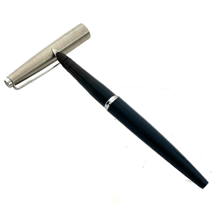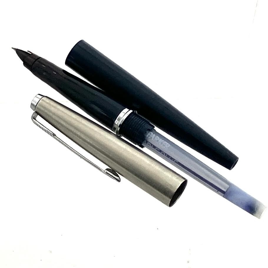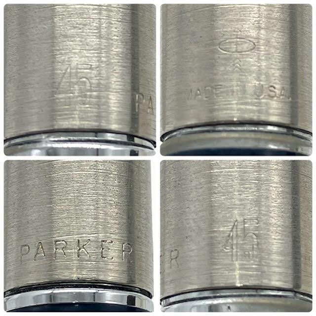 仙15 PARKER 45 USA製 万年筆 ペン先 刻印なし パーカー シルバー系 ネイビー 文房具 筆記用具