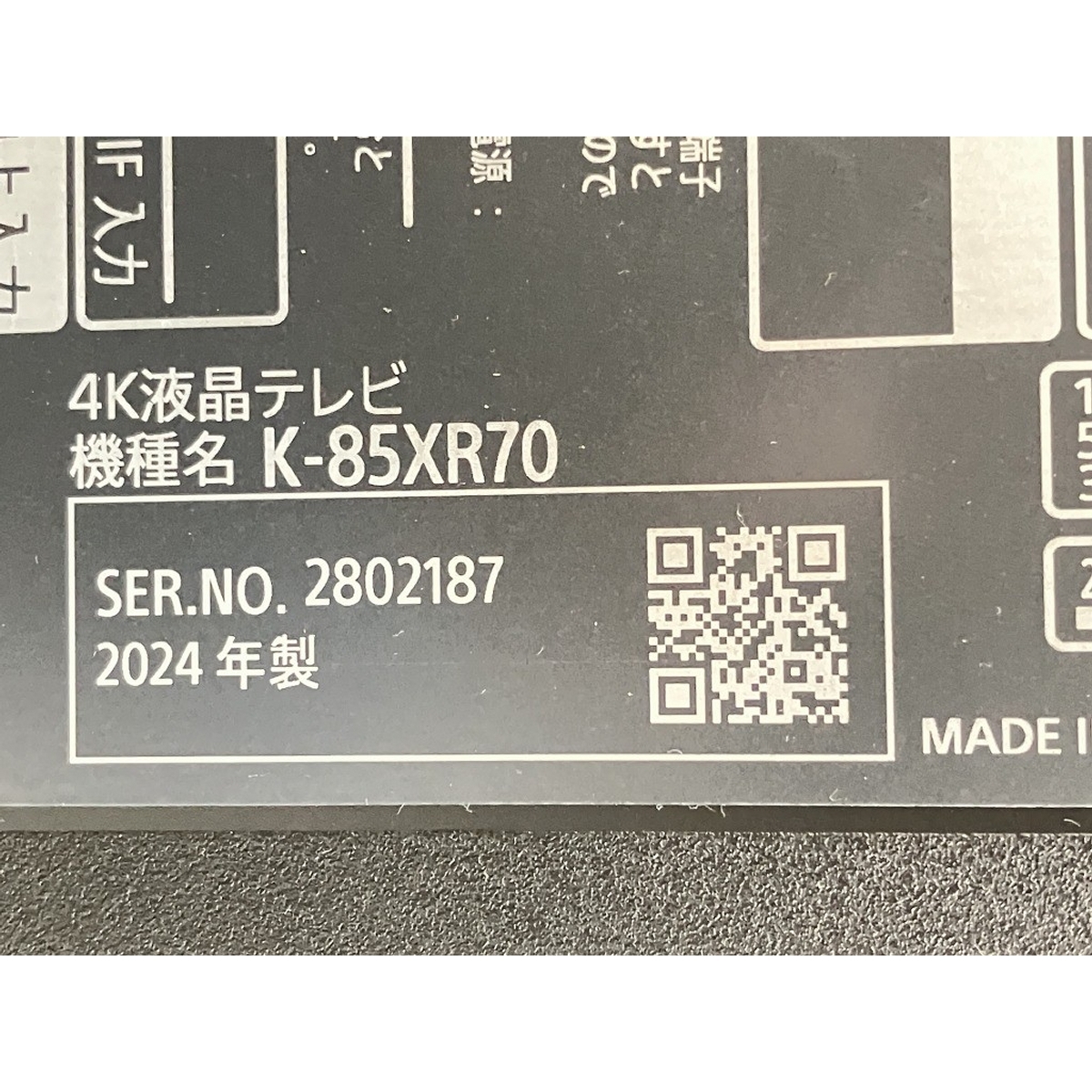 | SONY BRAVIA K-85XR70 4K 液晶 テレビ 85型 Mini LED搭載 2024年製 家電 ソニー ブラビア 中古 楽 W10625330 |