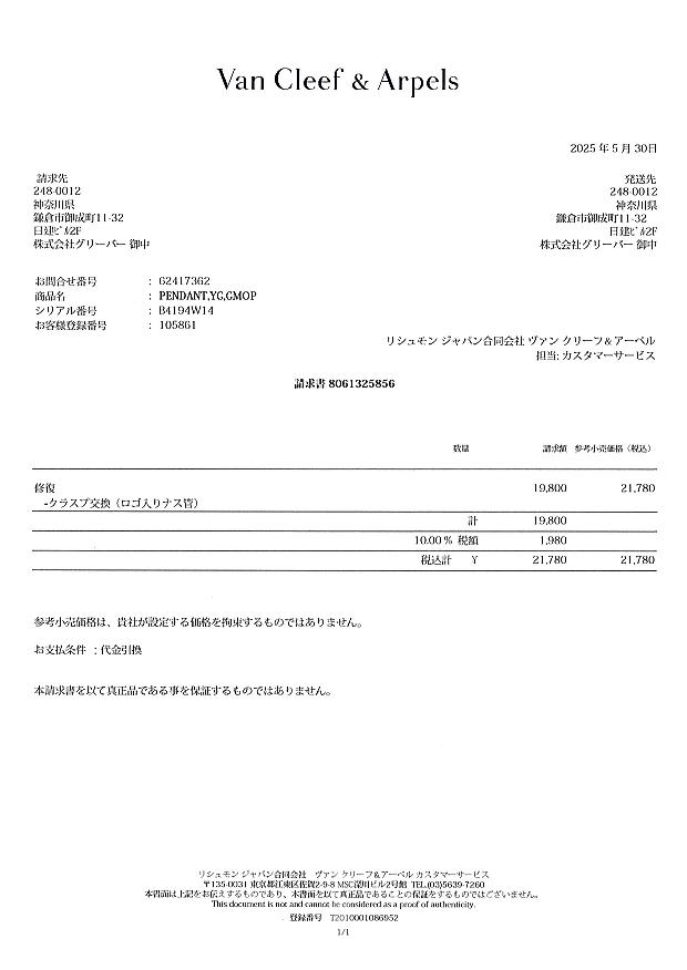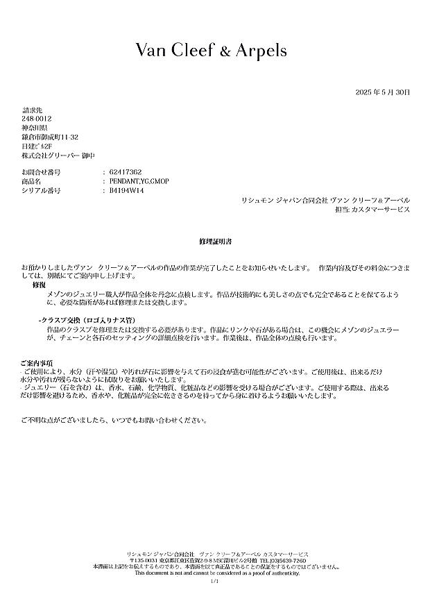 | 【商品ランク】 ※詳細はランク表をご確認下さい。 S 【ジャンル】 ネックレス/necklace 【ブランド】 ヴァンクリーフ&アーペル/Van Cleef & Arpels 【素材】 K18YG/18金/イエローゴールド 【重量】 5.2g 【サイズ】 ネックレスサイズ:約38/43cm トップデザインサイズ:約14.8×15.0mm 【石目】 ブラックシェル 【付属品】 修理証明書 【商品状態】 新品仕上げ済み ※ペンダントトップ地金側面に僅かなスレがございますが、装着時には殆ど気にならないレベルです。 【商品管理番号】 168172 |