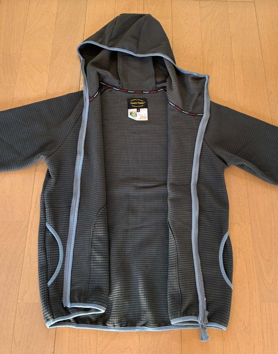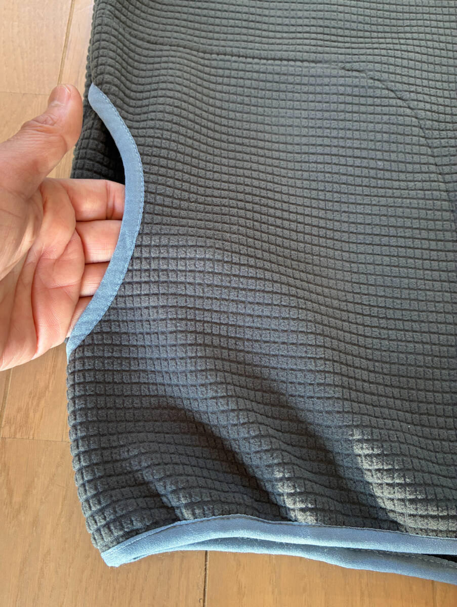 素材は、微細な起毛がグリッド状になっている吸湿発散と高い保温性を両立した機能性素材です。
