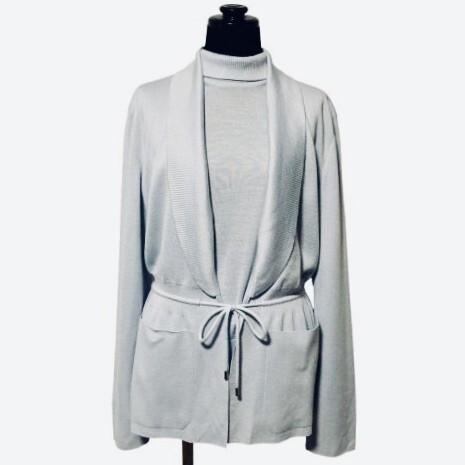 * 商品説明 * ■ロロピアーナのイタリア製 カシミヤシルク素材 アンサンブルニット/セーターです■ ●MADE IN ITALY ●お色は薄い水色です ●カーディガンはショールカラー、左右ポケットあり、フロントはウエスト部分でヒモで結ぶデザインです(ボタン等はありません) ●インナーニットのネックは折り返しデザイン(後ろボタン付き) ●ロロ.ピアーナジャパン株式会社 ★画像の色ですが、撮影状況やお客様が使用されているPC、スマホ環境等により、本来の色が伝わりにくい事がございます。どうぞご了承下さいませ。 ■素材→カシミヤ70% シルク30% ■サイズ表示→40 ■平置実寸 カーディガン:着丈64 肩幅41 袖丈64 身幅 インナーニット:着丈52 肩幅42 袖丈52 身幅50 ★手計測ですので誤差があるかと思います。あくまで目安としてご参考下さいませ。 ■商品状態■ 特に汚れダメージは見当たりませんが、なにぶんUSEDになりますので、その他細かなところを気にされる方、神経質な方はご遠慮ください。 ■基本的にノークレームノーリターンでお願いいたします(目立った汚れダメージの記載漏れなどの明らかな当方のミスを除く) ■USED商品に関しては、それぞれの生活環境が違う為、USED商品の特性上、多少の匂いはございます。匂いの感じ方には個人差があり、あくまで当方の基準での出品になりますので、ご了承の上ご入札をお願いいたします。 ■まとめて取引(同梱発送)について■ 同じ週の終了分(月曜日~日曜日締めまで)のみ 同梱発送をお受けさせて頂きます。 (但し、規定により最初の落札時間から72時間以内に落札された商品で20点までが対象です) ※まとめて取引の発送は おてがる配送(ゆうパック または宅急便コンパクト)のみとさせていただきます ★★★「まとめて取引」での依頼のみ 同梱発送をお受けさせて頂きますので、お間違いのないようよろしくお願いいたします。