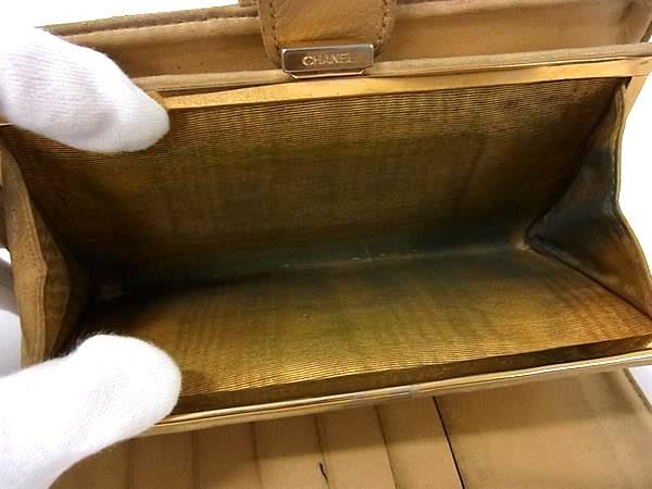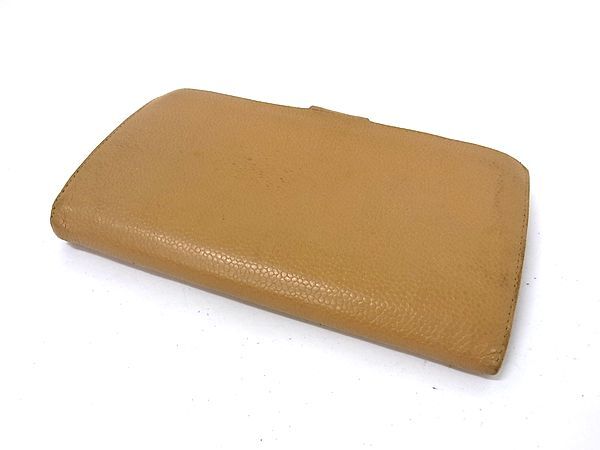 1円 CHANEL シャネル ココマーク キャビアスキン がま口 二つ折り 長財布 小銭入れ 札入れ カード入れ レディース ベージュ系 FT3678