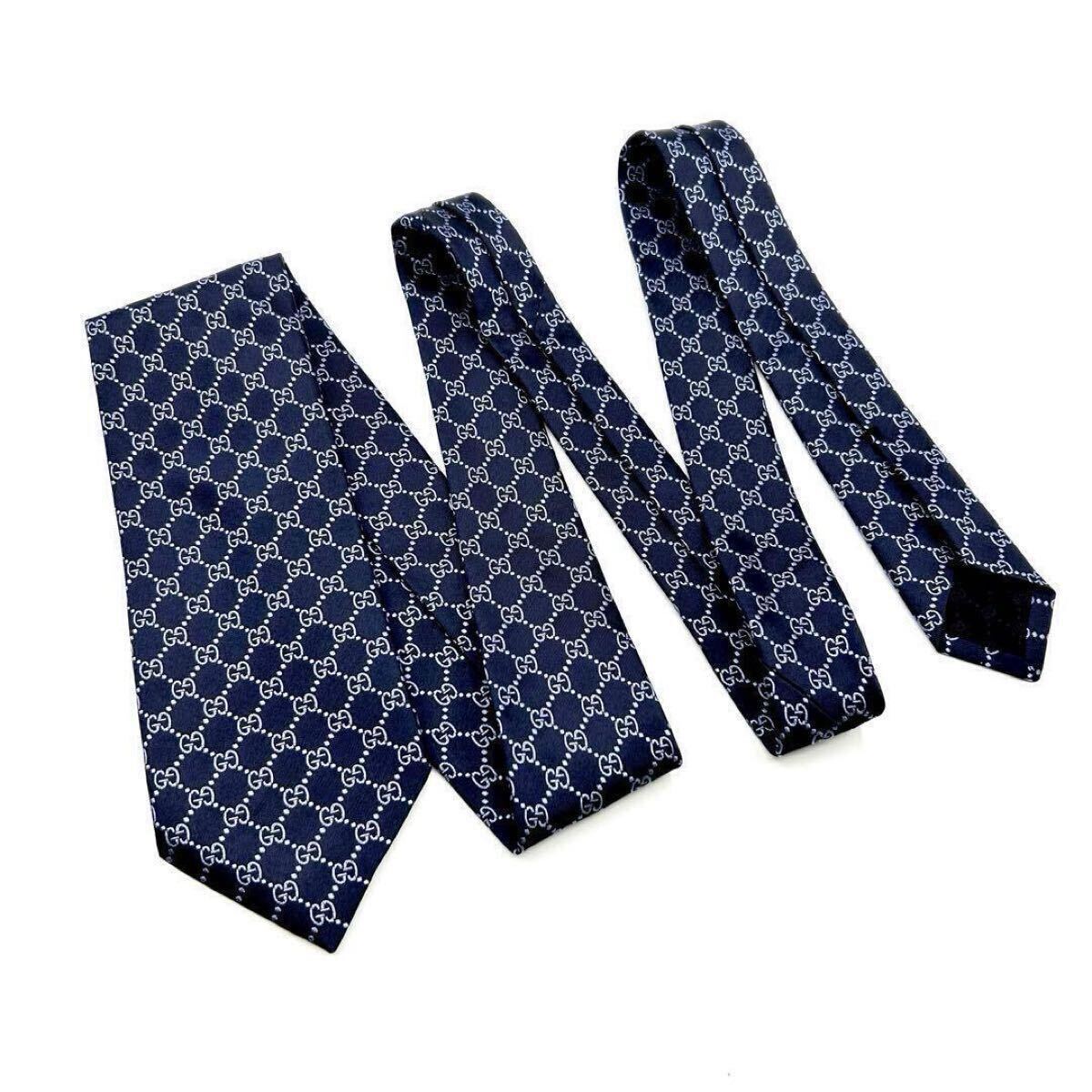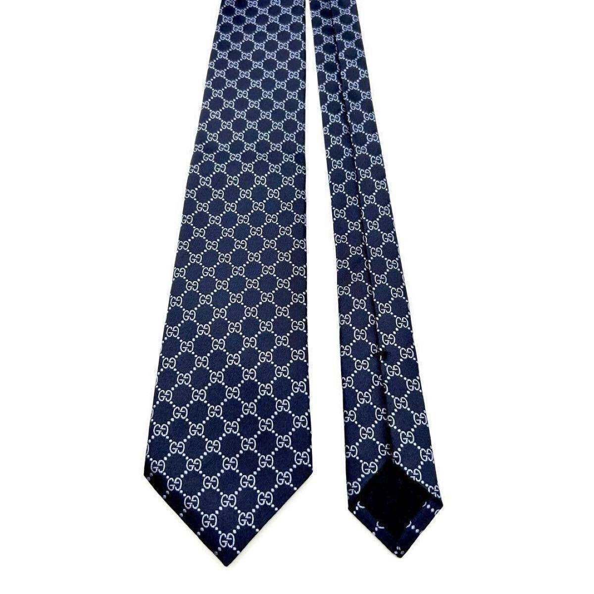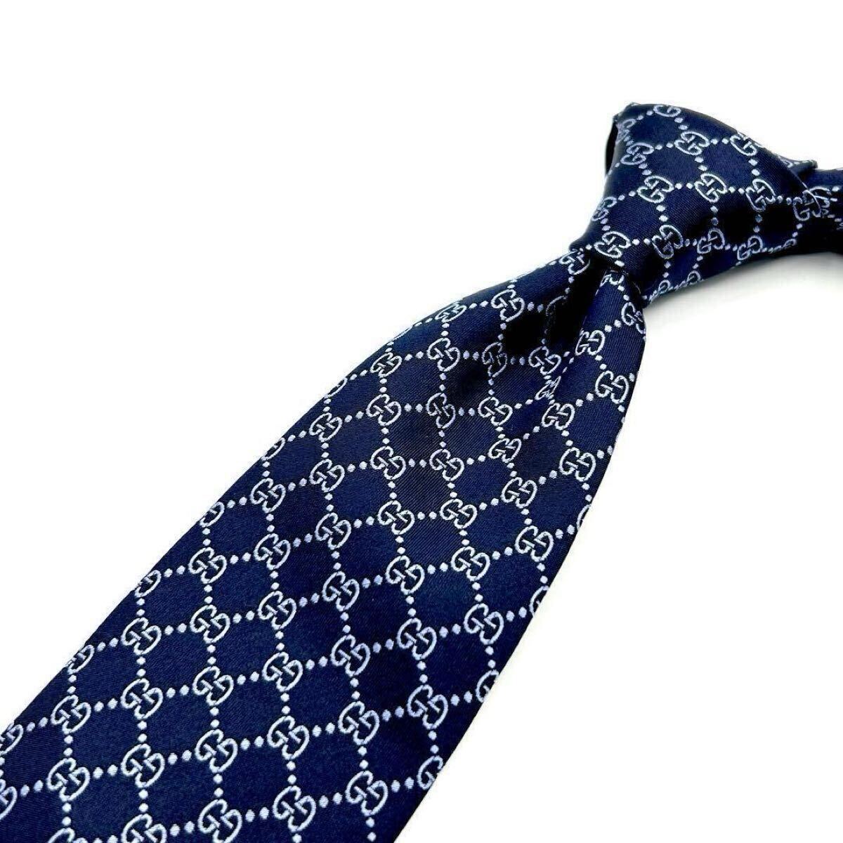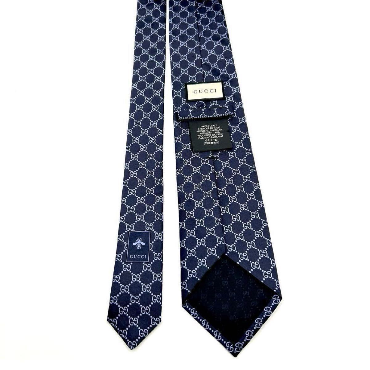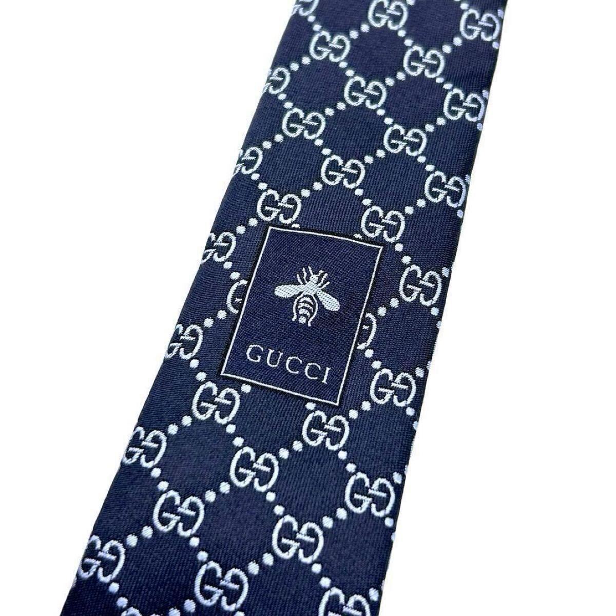 1円 美品 GUCCI グッチ GG柄 高級シルク 蜂 ハチ bee ネイビー ネクタイ メンズ ビジネス プレゼント クリスマス 結婚式 パーティー 誕生日