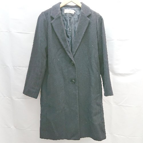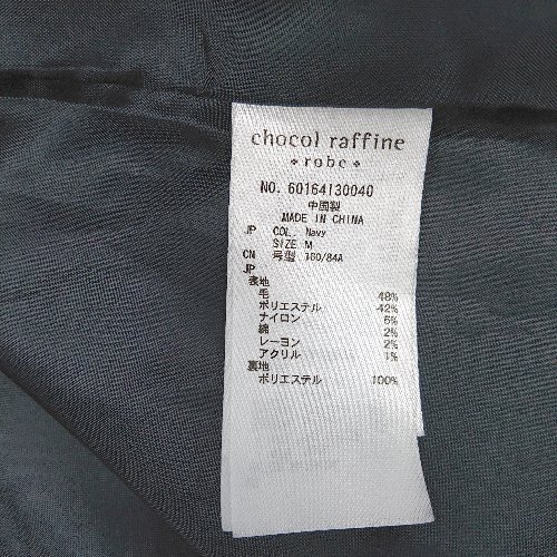◇ chocol raffine robe Vネック 起毛 裏地 ボタン シンプル 長袖 コート サイズM ネイビー系 レディース E