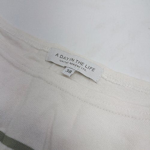 ◇ ⊂ A DAY IN THE LIFE UNITED ARROWS 綿 ボーダー 半袖 Tシャツ サイズ38 ホワイト系 レディース E