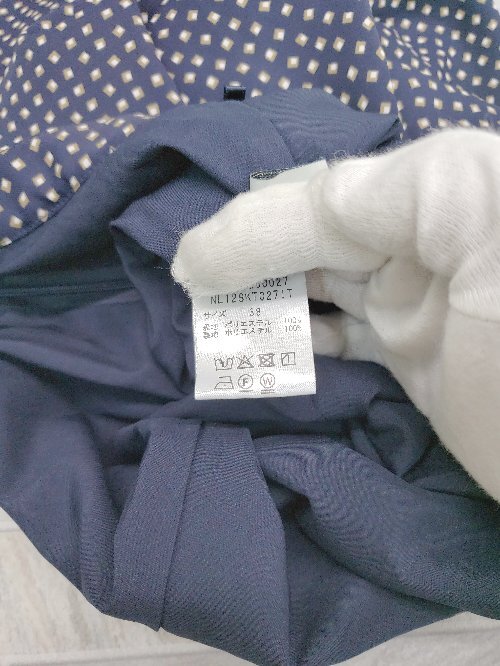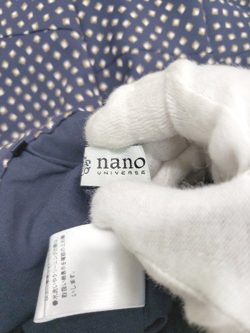◇ nano universe ナノ ユニバース 総柄 ロング フレア スカート サイズ38 ネイビー マルチ レディース P