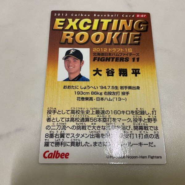 1円〜 カルビー 2013 ベースボールカード EXCITING ROOKIE D-07 大谷翔平