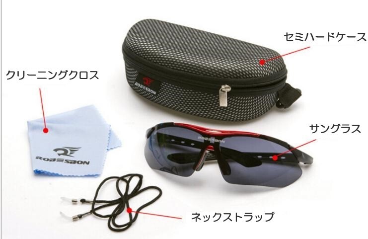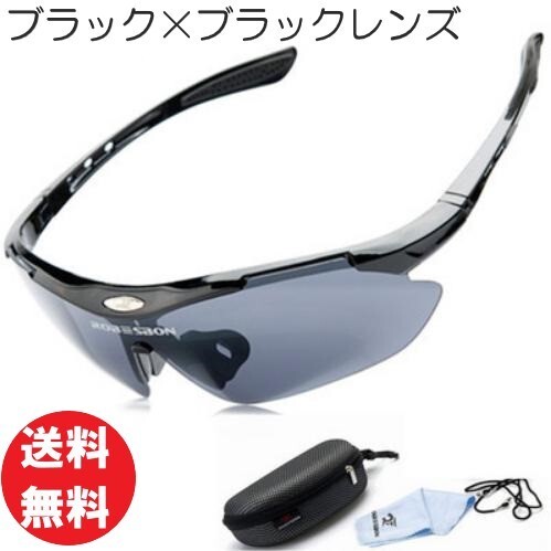送料コミコミ☆収納ケース付 スポーツサングラス 4点セット ブラック×ブラックレンズ 紫外線カット サングラス メンズ ランニング