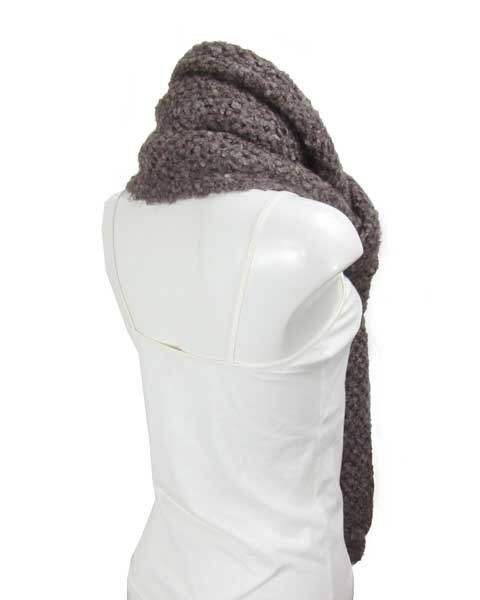 | コメント | パープルが混ざったような茶系のニットストール。 伸縮性のあるざっくり編み。 冬の装いのプラスワンのオシャレにや防寒として いかがでしょうか。 |