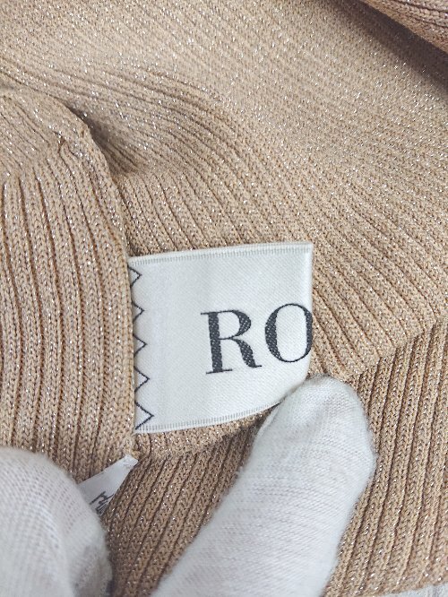 ◇ ROPE' ロペ ラメ スリット 半袖 膝下丈 ワンピース サイズ38 ベージュ レディース P