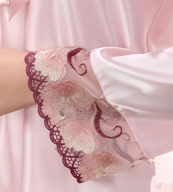 | ★新品★刺繍★高級シルク上下パジャマセット★XL★333-1★薄いピンク★ |