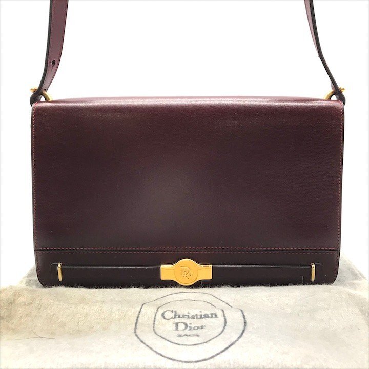 1円 美品 ChristianDior ディオール レザー ロゴ金具 プッシュロック ショルダー バッグ レディース 鞄 かばん ボルドー a10892 | |||