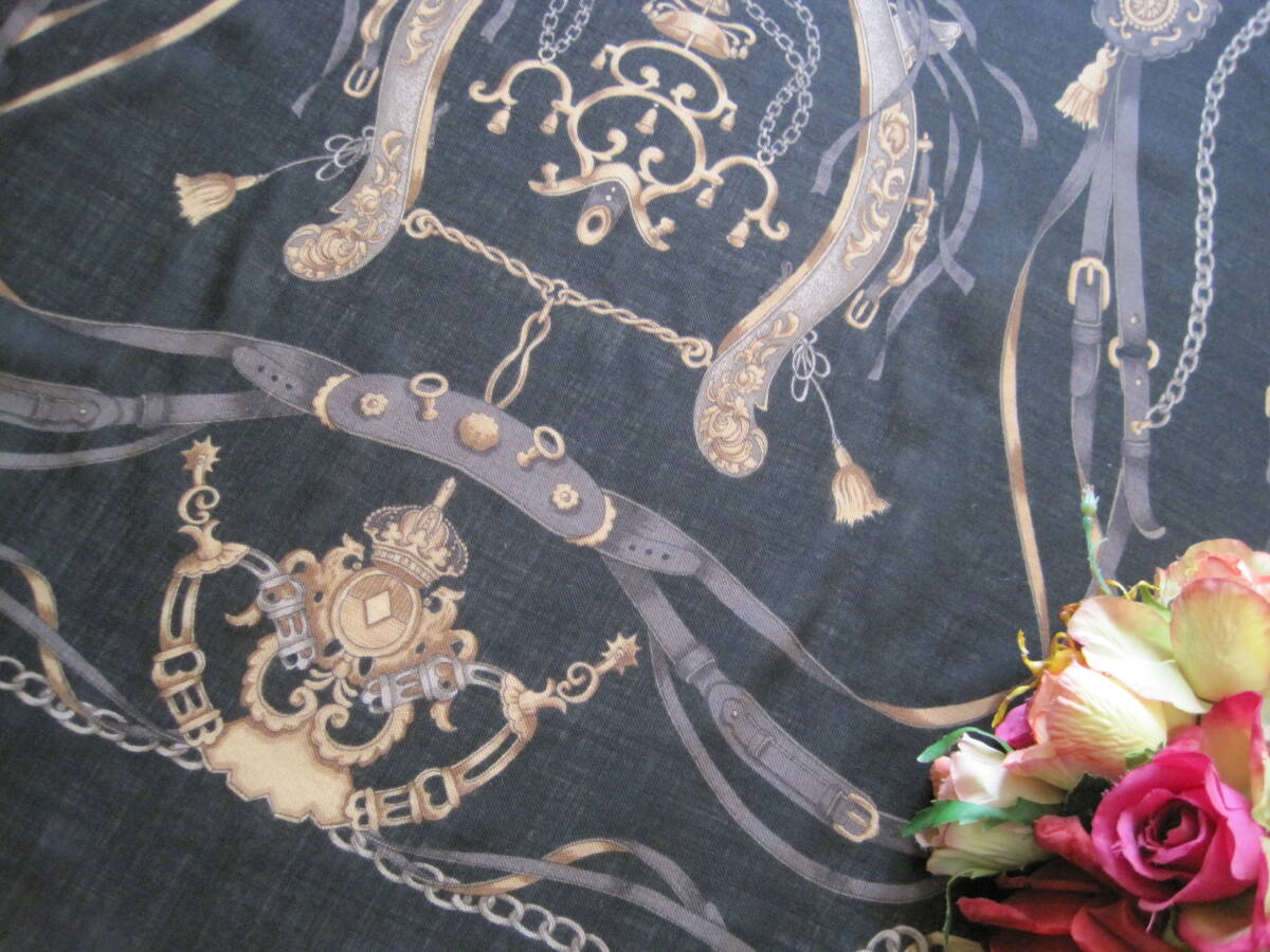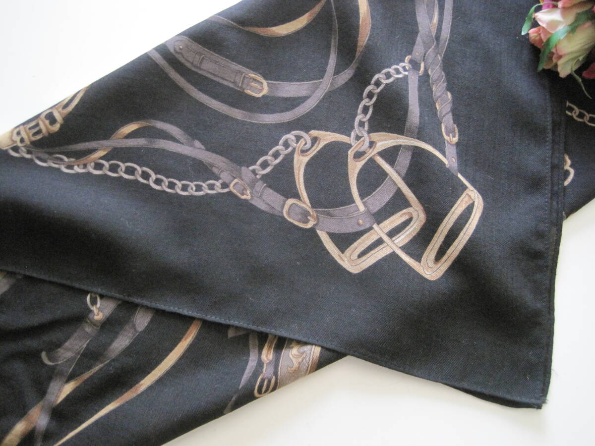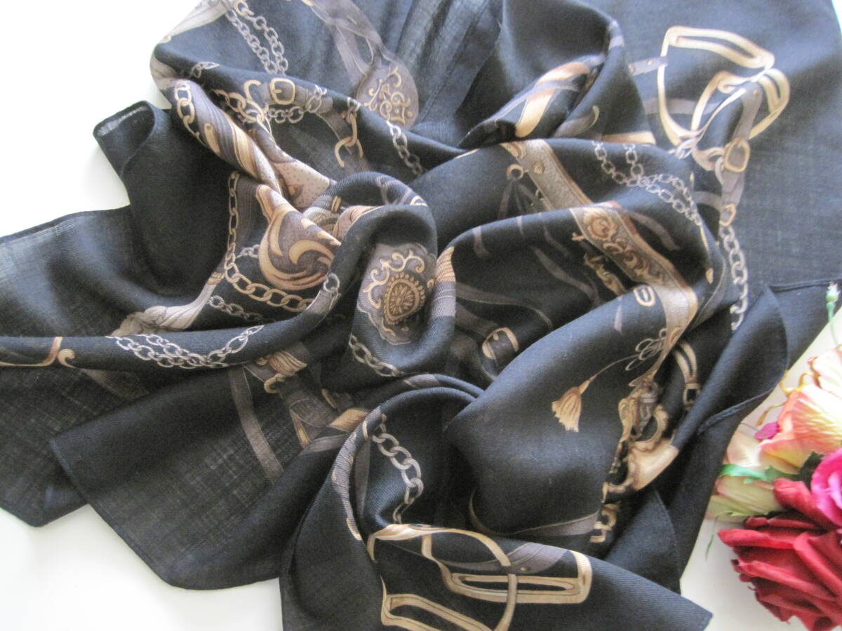 ★ウールスカーフ・約85cm×90cm・黒ベースにベルト柄・ソフトで柔らか・送料185円★