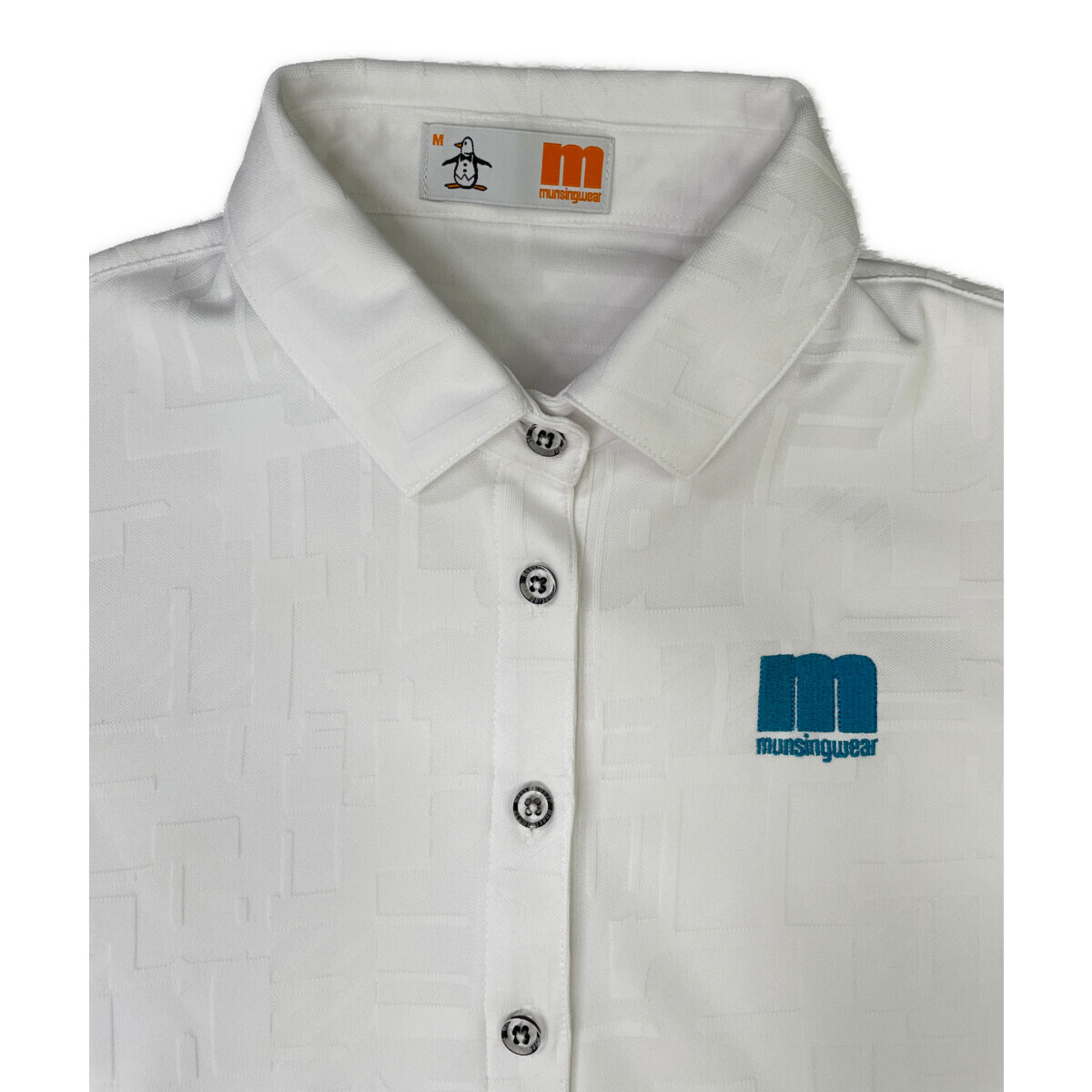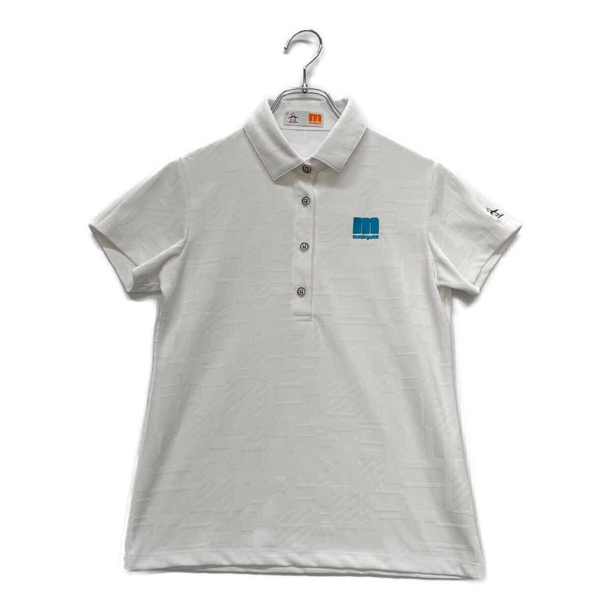 coco 中古【値下げ】 マンシングウェア Munsing wear レディース 半袖ポロシャツ M 白 ホワイト 総柄 ネコポス発送可 92774