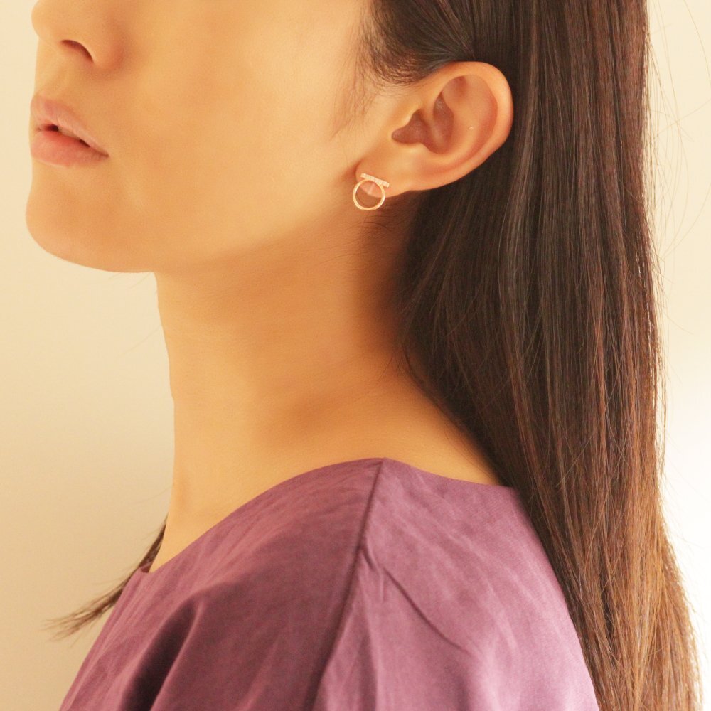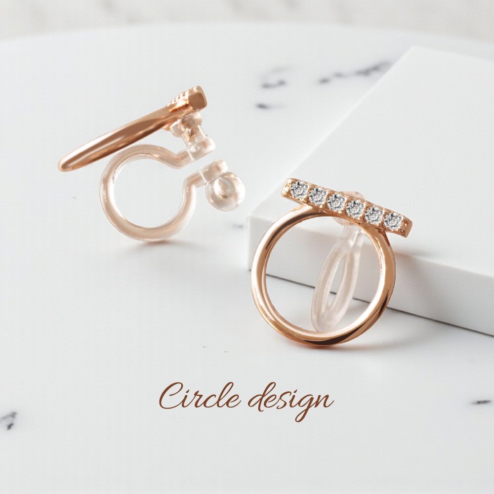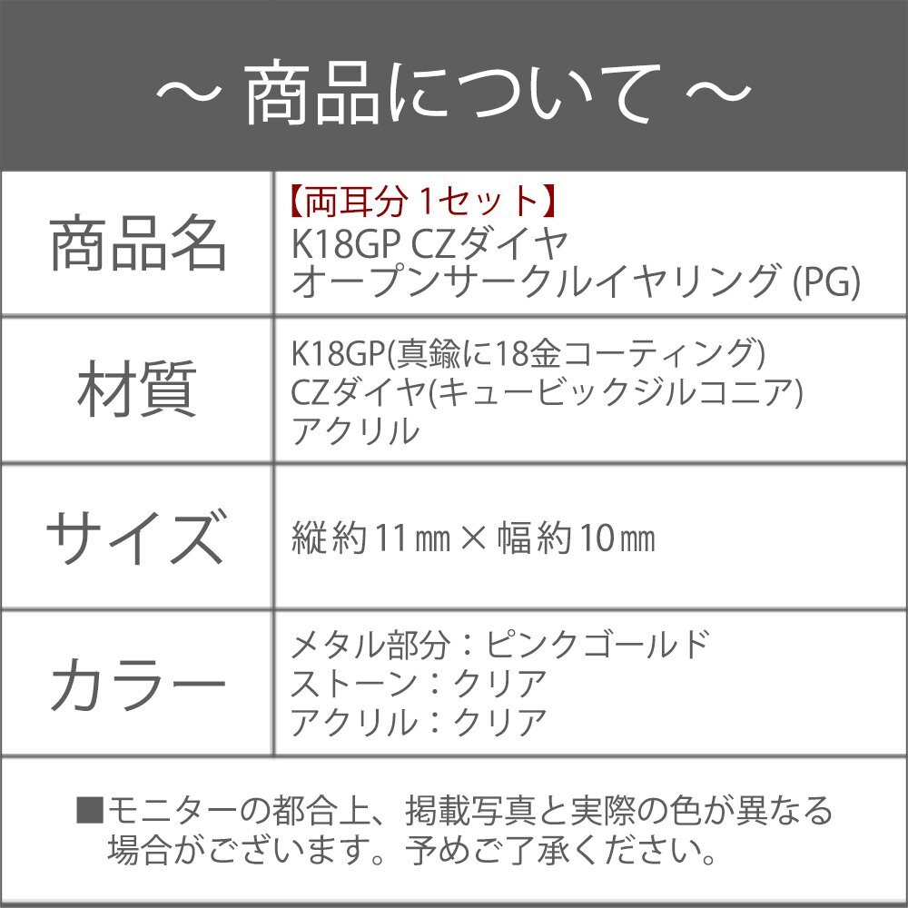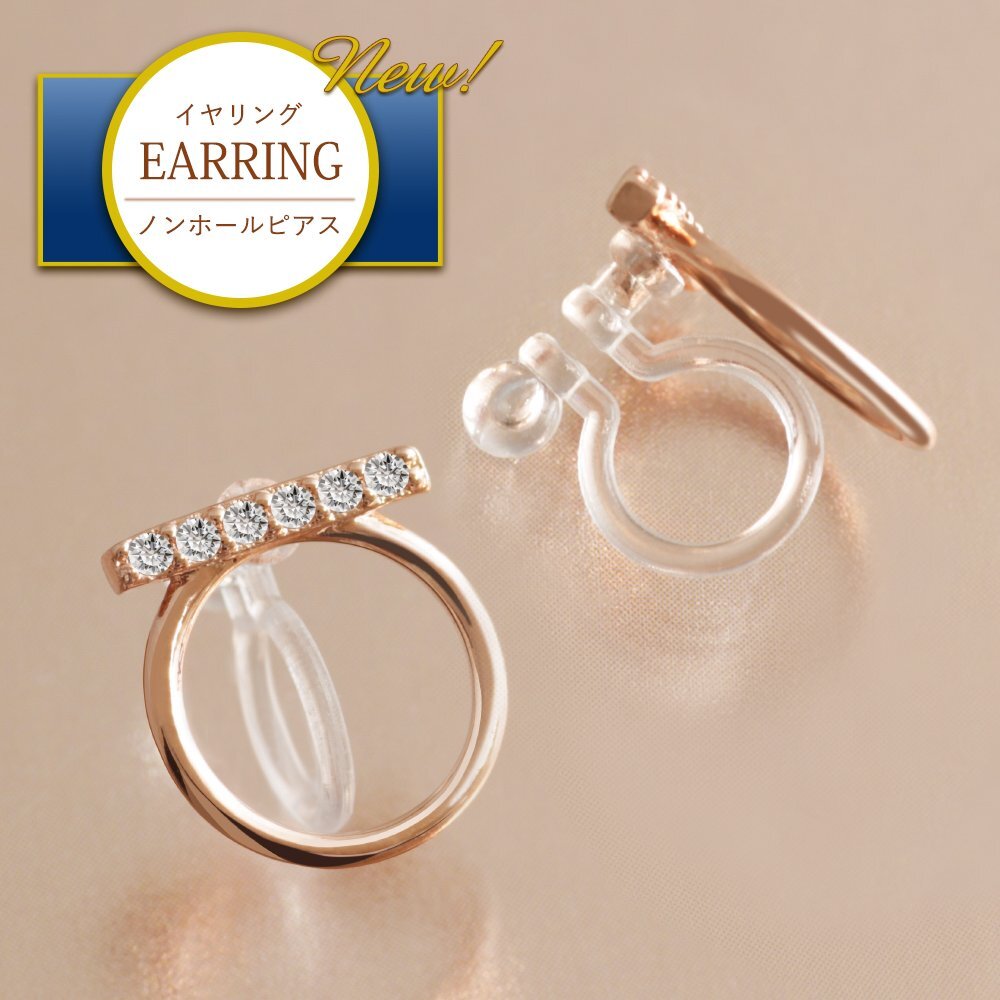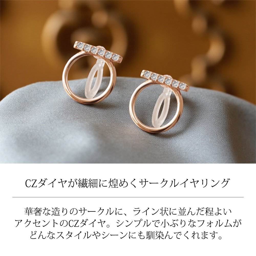 新品/イヤリング/K18GP/レディース/サークル/ラインバー/ピンクゴールド/18金/18kコーティング/ピアス見え/樹脂/金属アレルギー/ダイヤ/CZ