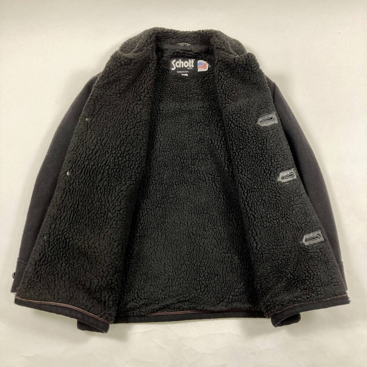 ★ USA製 schott ショット ボアジャケット コート アウター 襟ボア ブラック 40 メンズ 1.4kg