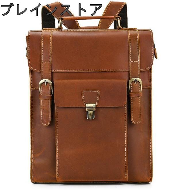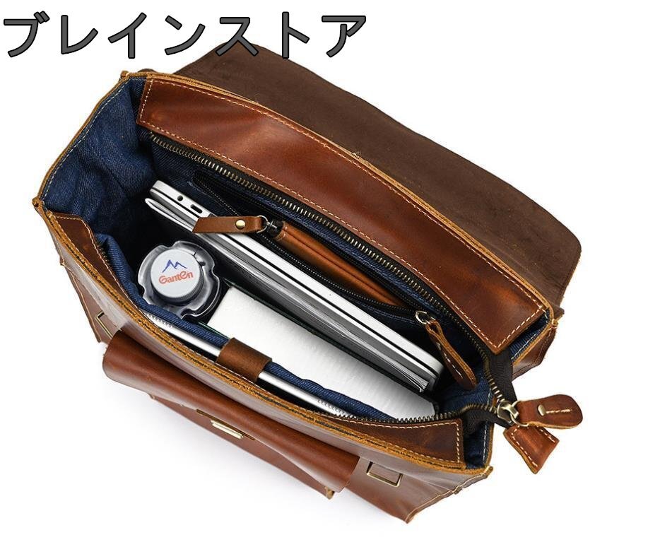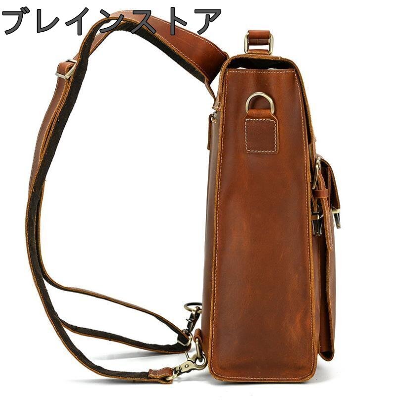 人気美品★大容量 ヌメ革 牛革 栃木レザービジネスバッグ 書類鞄 ハンドメイド ショルダーバッグ 斜めがけ ハンドメイドリュックバッグ