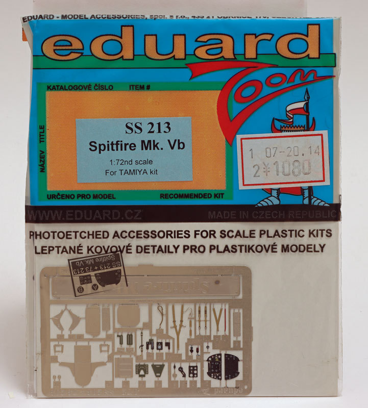 エデユアルドズーム SS213 1/72 スピットファイアーMk.Vb タミヤ用 Parts-001です。