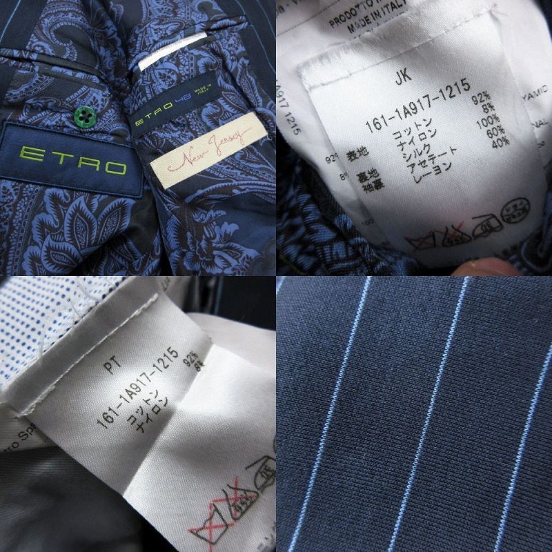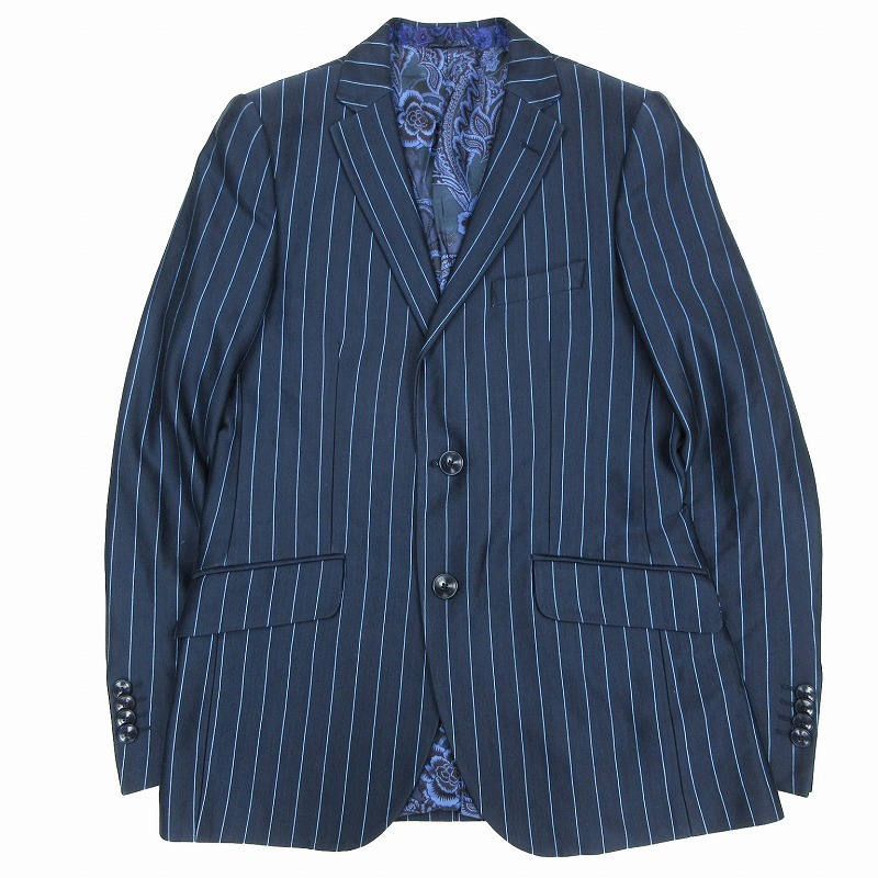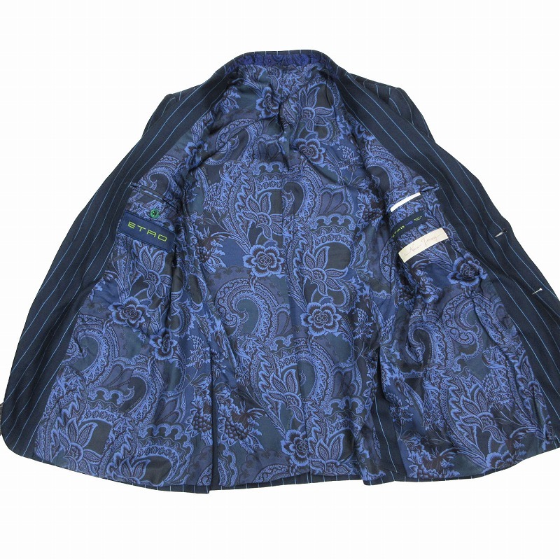 | 【エトロ ETRO NEW JERSEY ストライプ柄 スーツセットアップ ペイズリー柄裏地 ネイビー サイズM メンズ 1A917】 | |