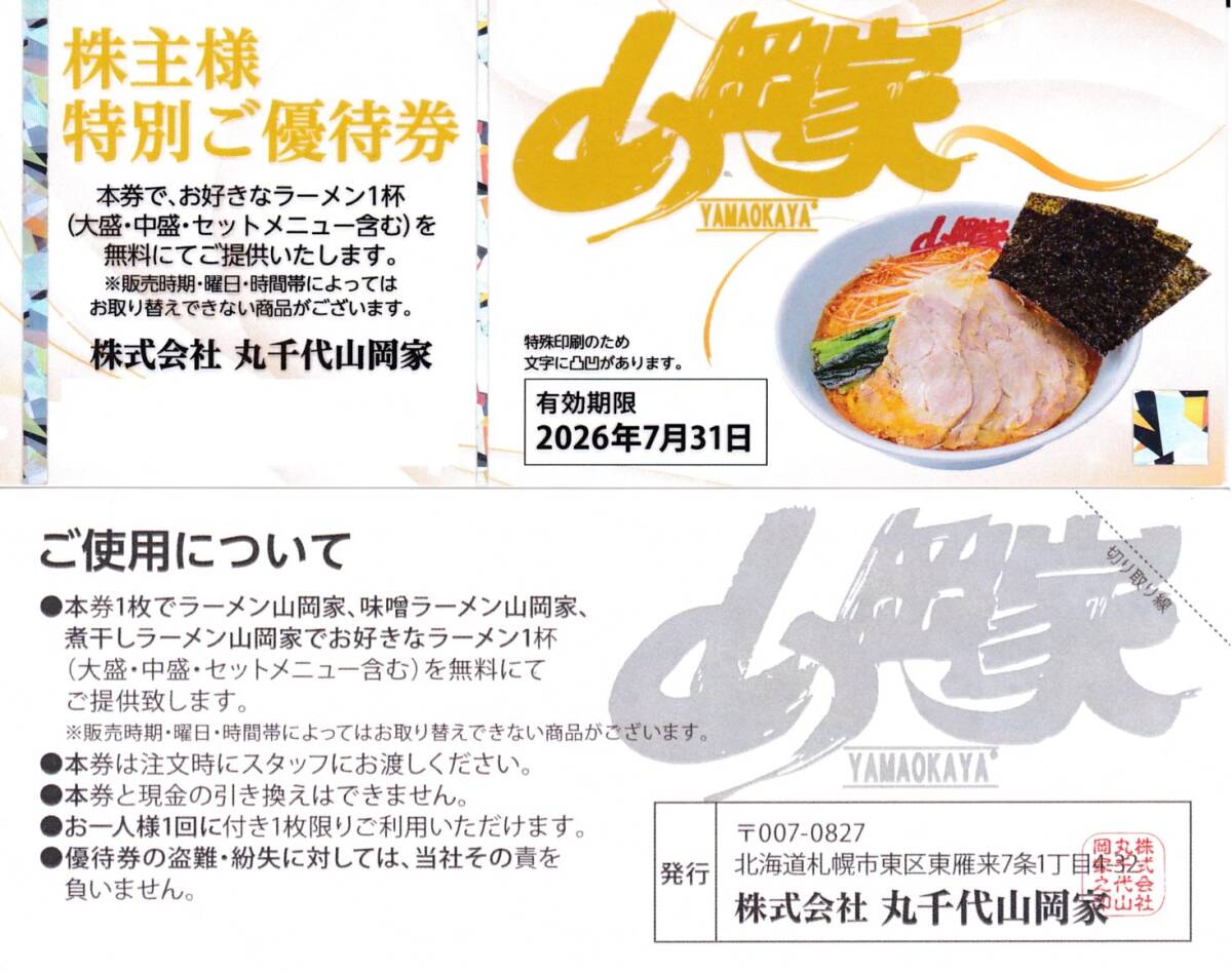 最新【即決1枚1200円】丸千代山岡家株主優待 6枚出品 お好きなラーメン