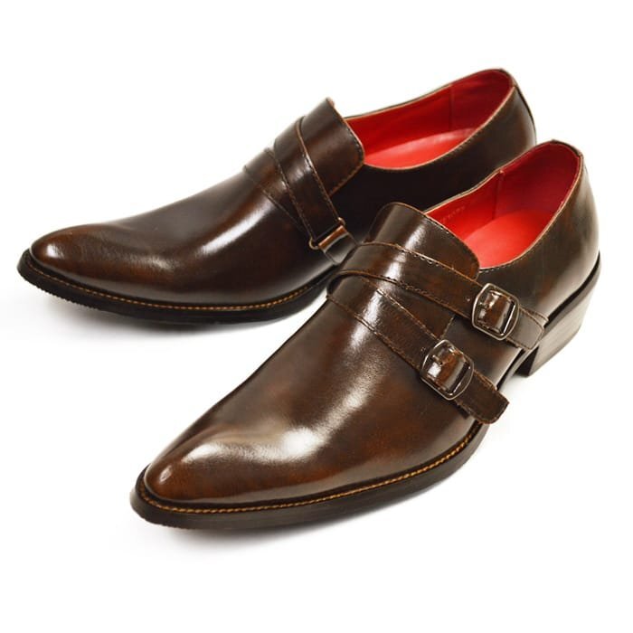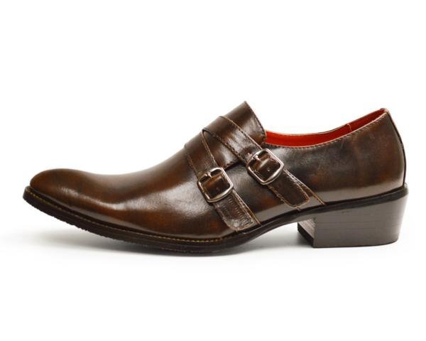 ビジネスシューズ 紳士靴 4.5cmヒール メンズ 革靴 モンクストラップ ベルト 脚長 フォーマル 冠婚葬祭 イタリアンデザイン ze1073