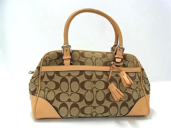 1円 COACH コーチ 8K05 シグネチャー キャンバス×レザー ハンドバッグ トートバッグ ミニバッグ レディース ブラウン系 FU7226