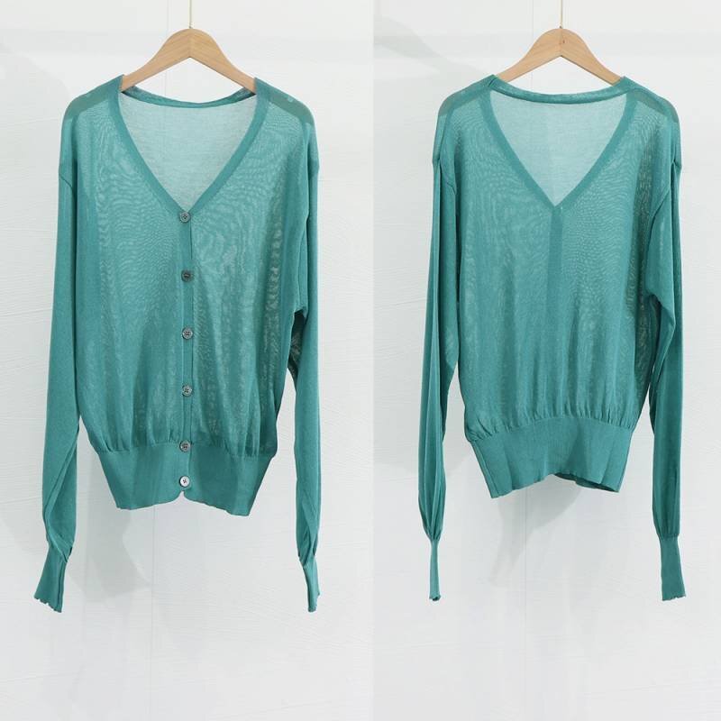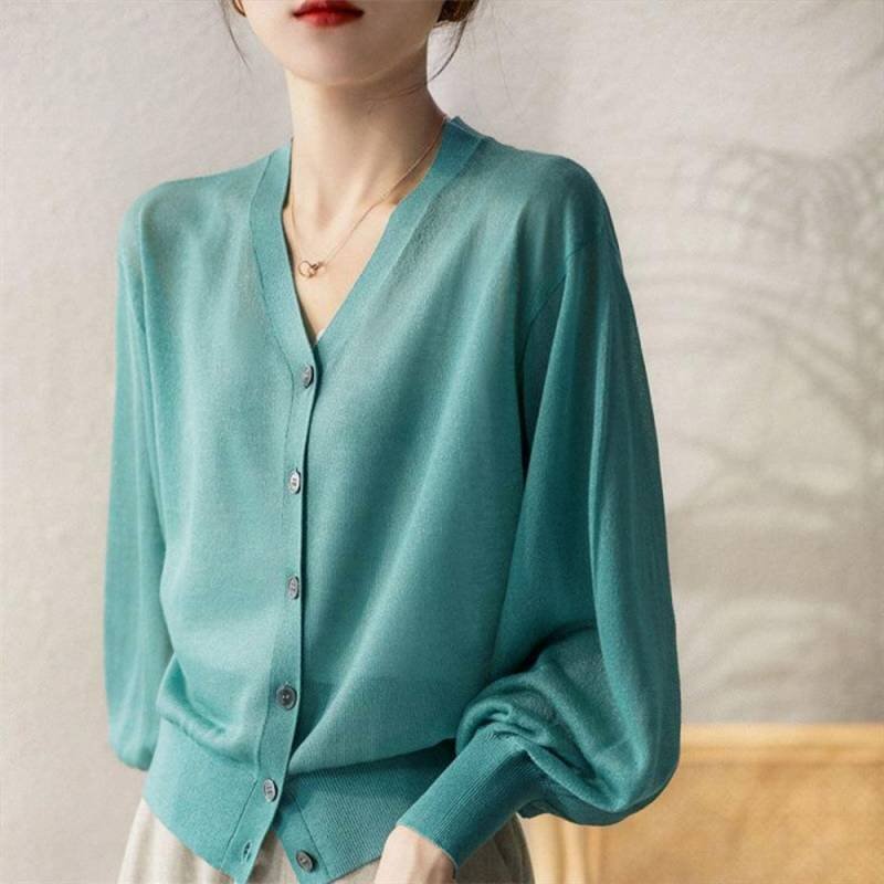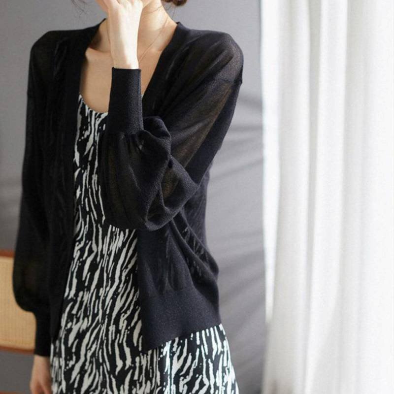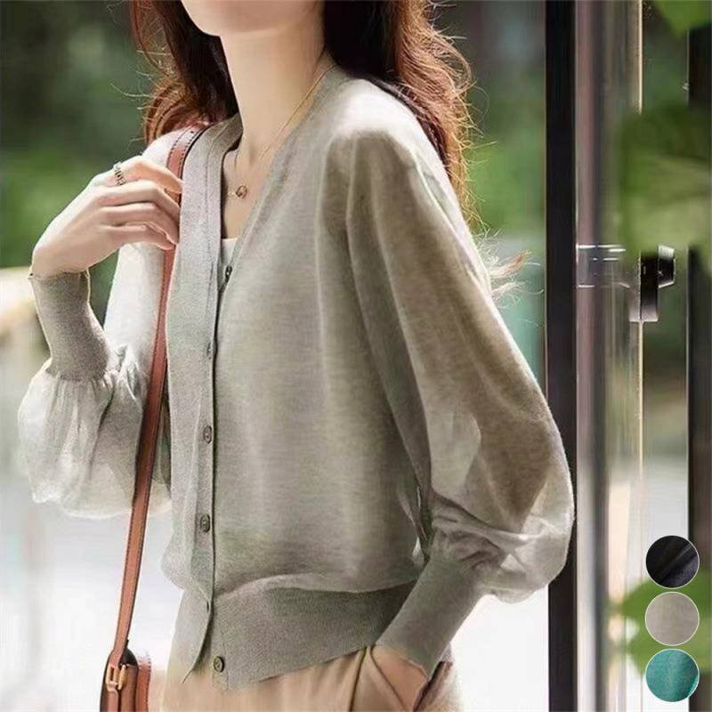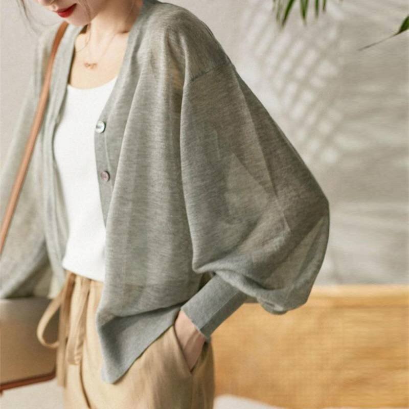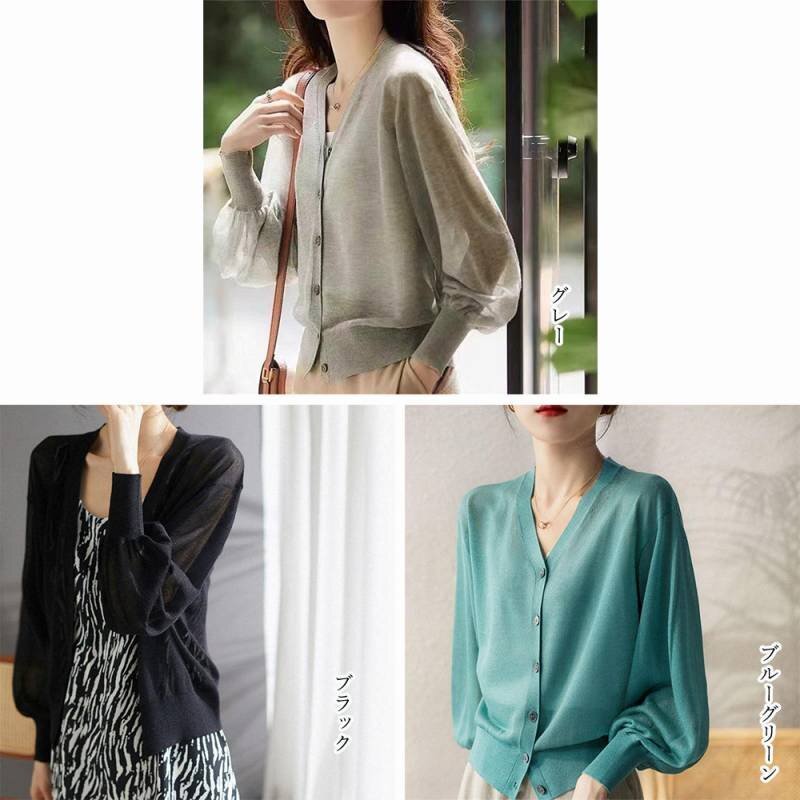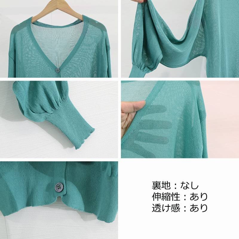 透け感が涼しげな薄手ニットカーディガンです。ボリューム感のあるスリーブで二の腕カバーしてくれます。