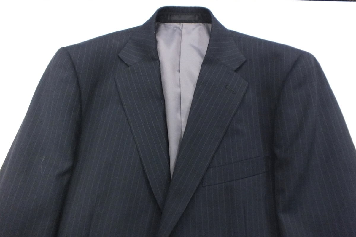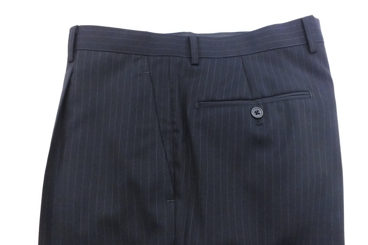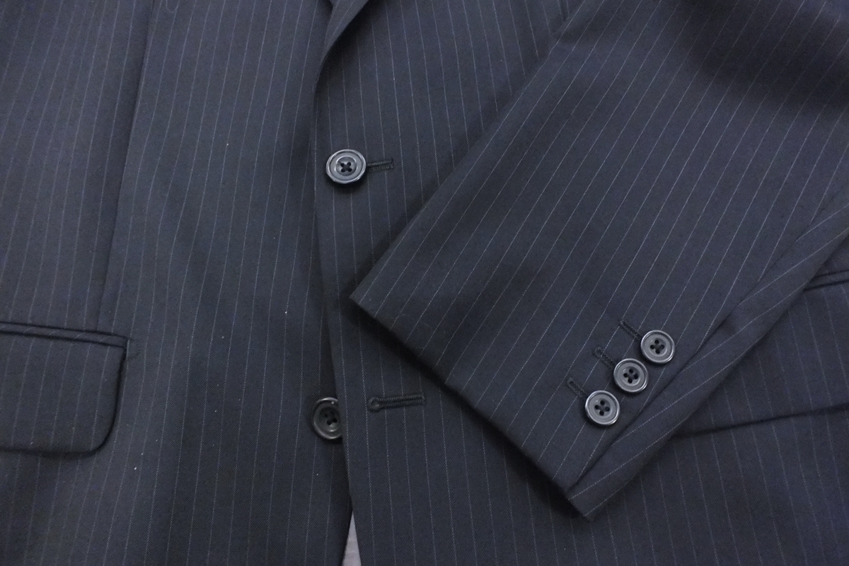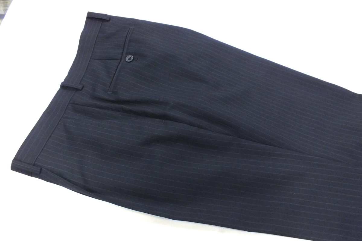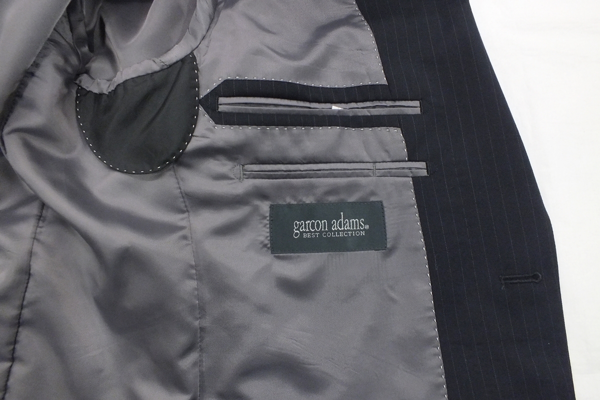 サイズ:AB5(胸回96・腰回86・身長170) 上着デザイン:シングル2釦スーツ ベンツ:センターベンツ 裏仕様:総裏 パンツ部分:ワンタッグ 色:ネービー系8MM縞 表素材:ウール50/ポリエステル50 胴裏:ポリエステル100% 袖裏:ポリエステル100% 縫製:中国縫製 詳細な寸法 AB5 上着:胸囲114・胴廻り100・着丈73・肩幅46.7・袖丈59 パ ン ツ :ウエスト86・股上27・股下90・渡り幅35.5・膝幅25.8・裾幅22.7 上記記載の数字は何れもcmになります。 | ||||