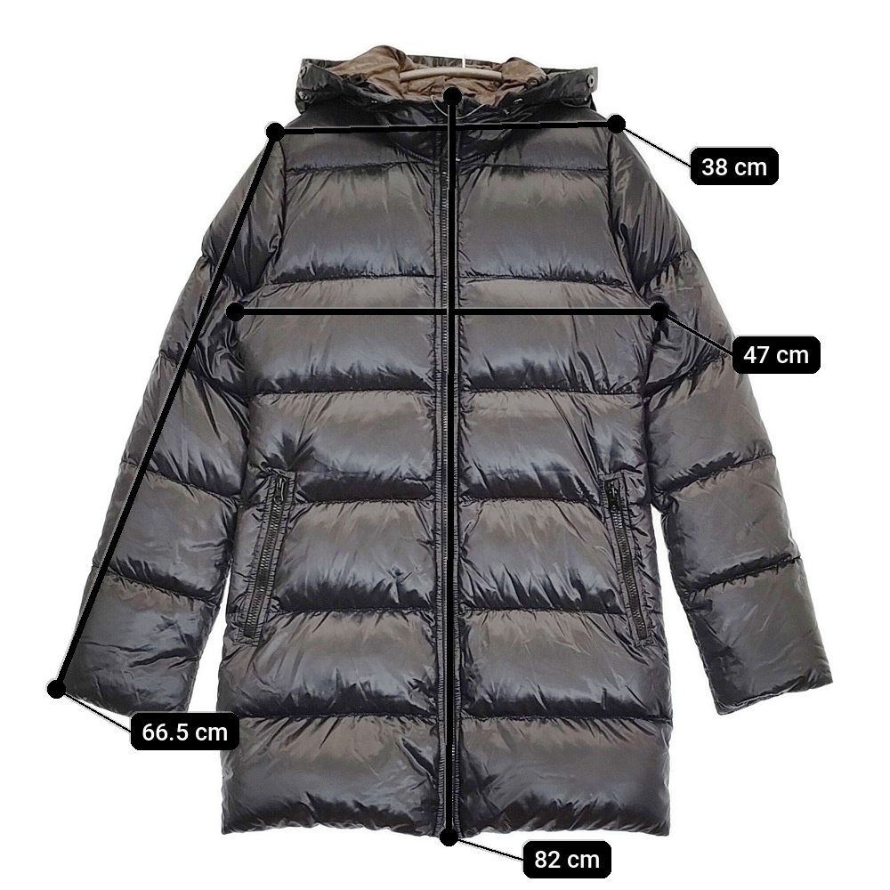 | 実寸サイズ | 肩幅:約38cm 着丈:約82cm 身幅:約47cm 袖丈:約66.5cm ※採寸画像がある商品はハンガーに吊るした状態での計測のため、平置きでの採寸とは差が生じる場合がございます。平置きでの実寸サイズをご希望の場合は、ご購入前に必ずご質問ください。 ※記載以外のサイズが合わないことを理由とした返品はできませんので、 記載部分以外で実寸サイズの気になる箇所があれば必ず購入前にご質問ください。 |