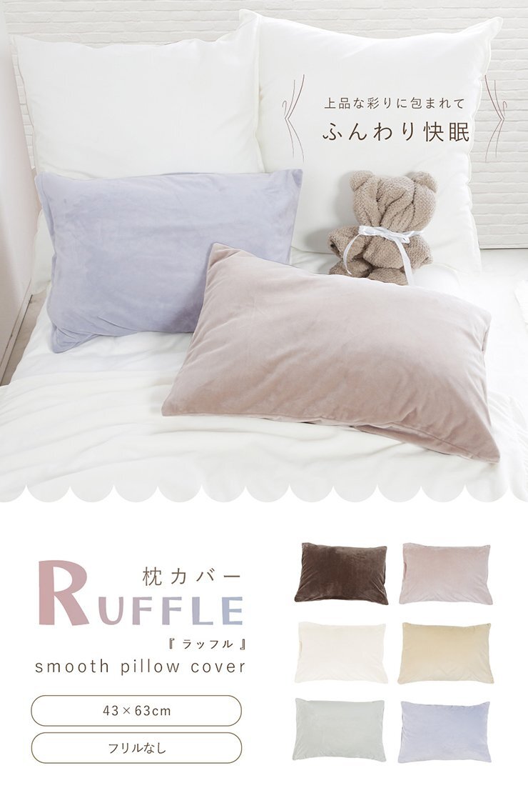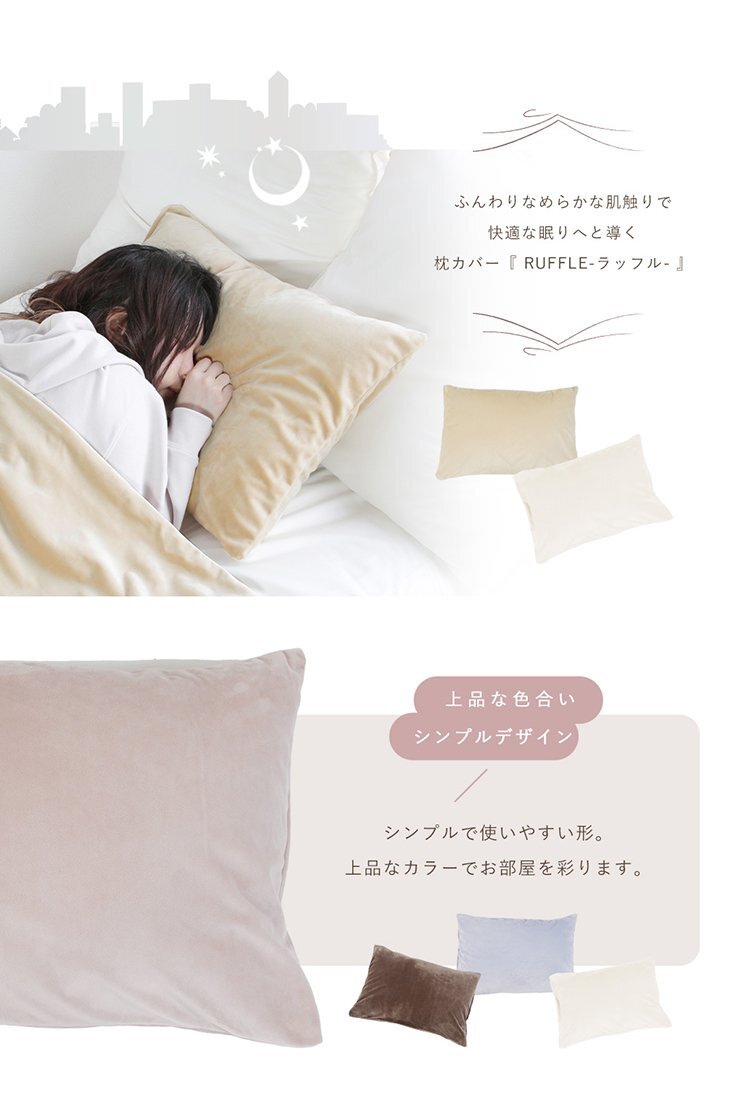 枕カバー ピローケース 水晶フランネル 43×63cm用 まくらカバー 封筒式 ファスナー 寝具 洗濯可 シンプル ミルクティベージュ
