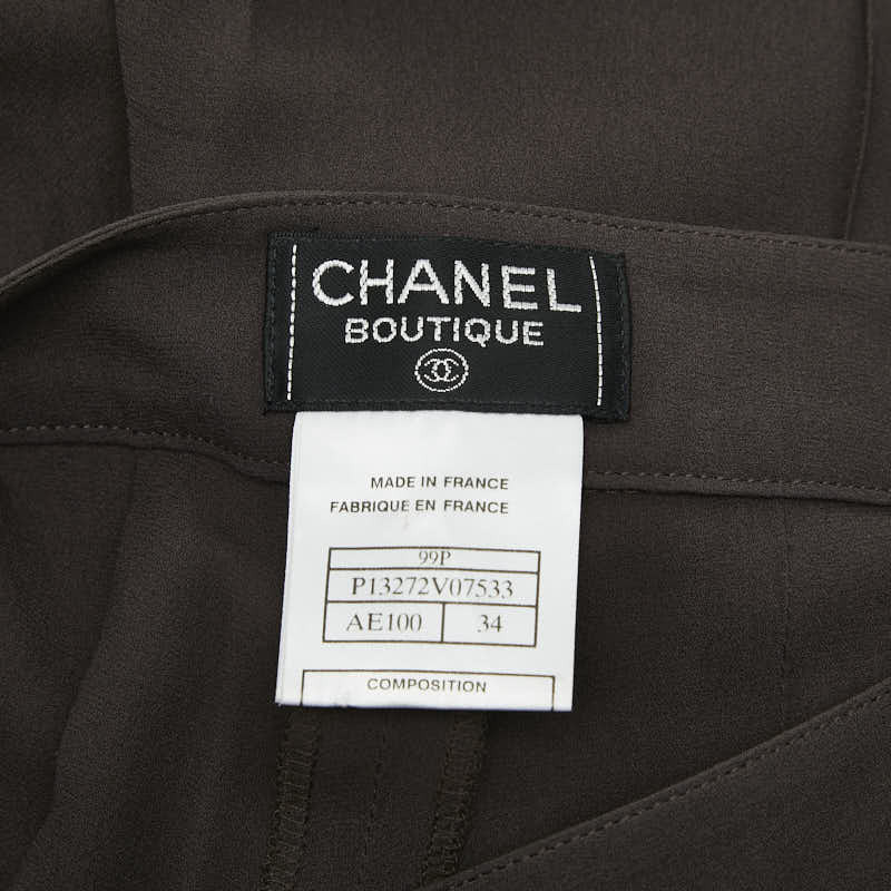 シャネル センターシームパンツ サイズ34 ブラウン シルク レディース CHANEL 【中古】