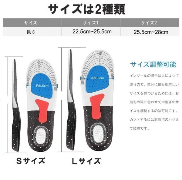 ▼送料無料▼ 衝撃吸収 インソール メンズ Sサイズ 23.0~24.5cm 靴の中敷き クッション 安全靴 ワークブーツ