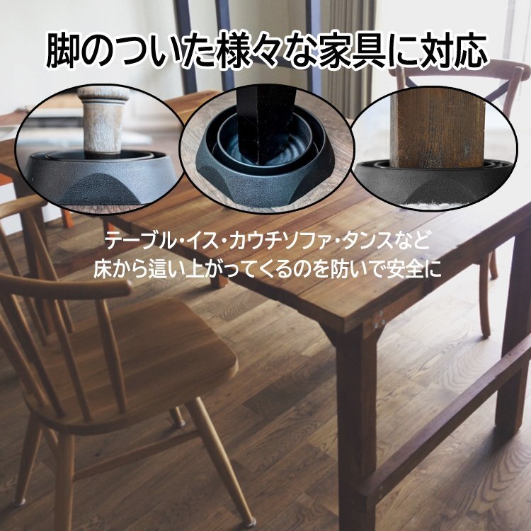 置くだけで手軽に対策ができ、イスやデーブルなど脚のついた家具にも使用できます。