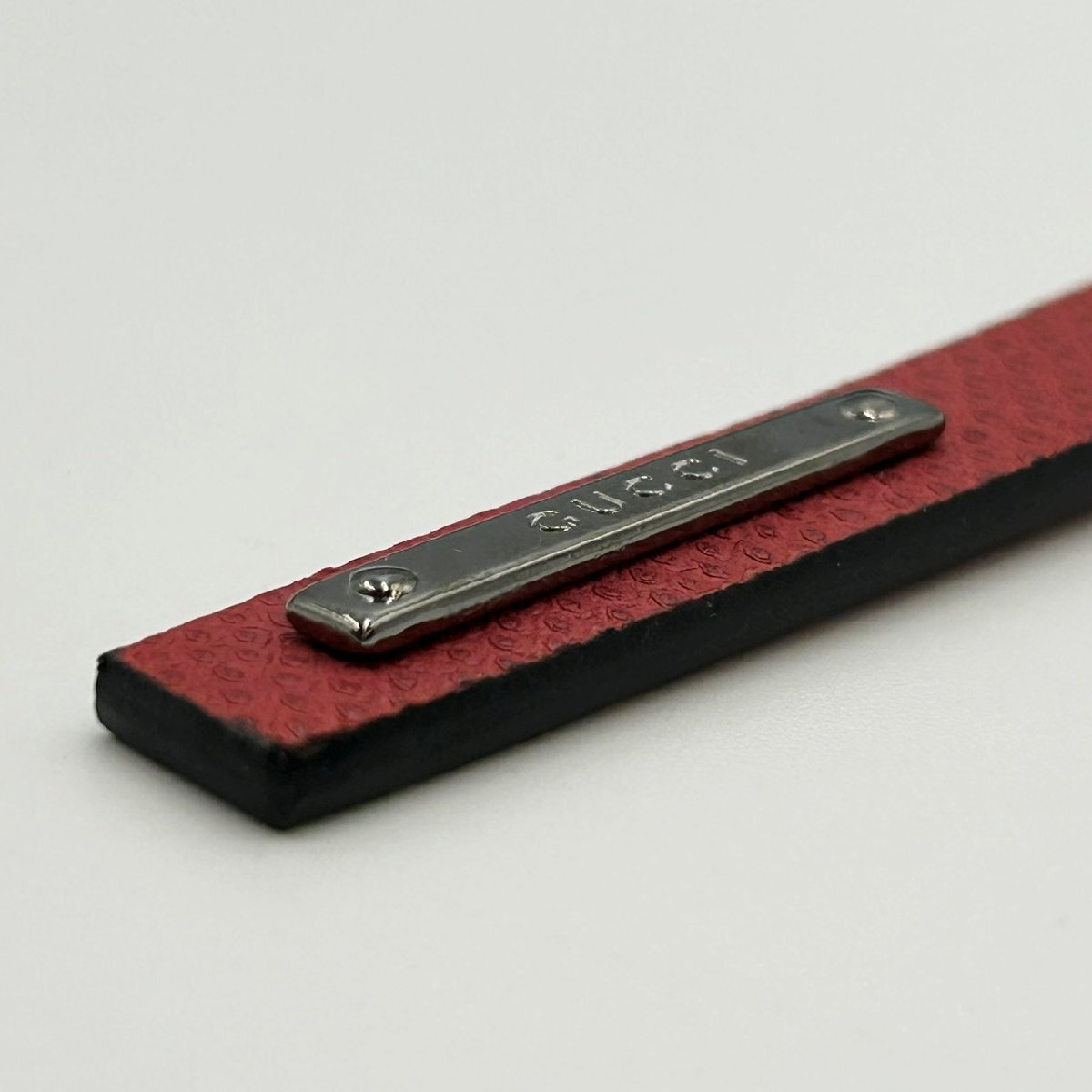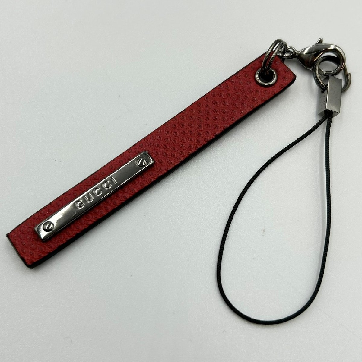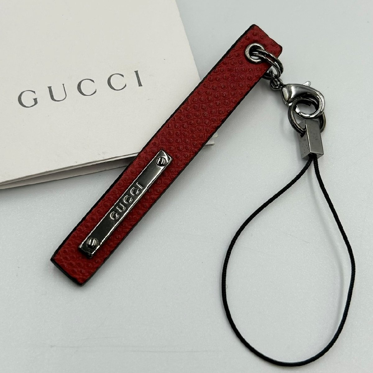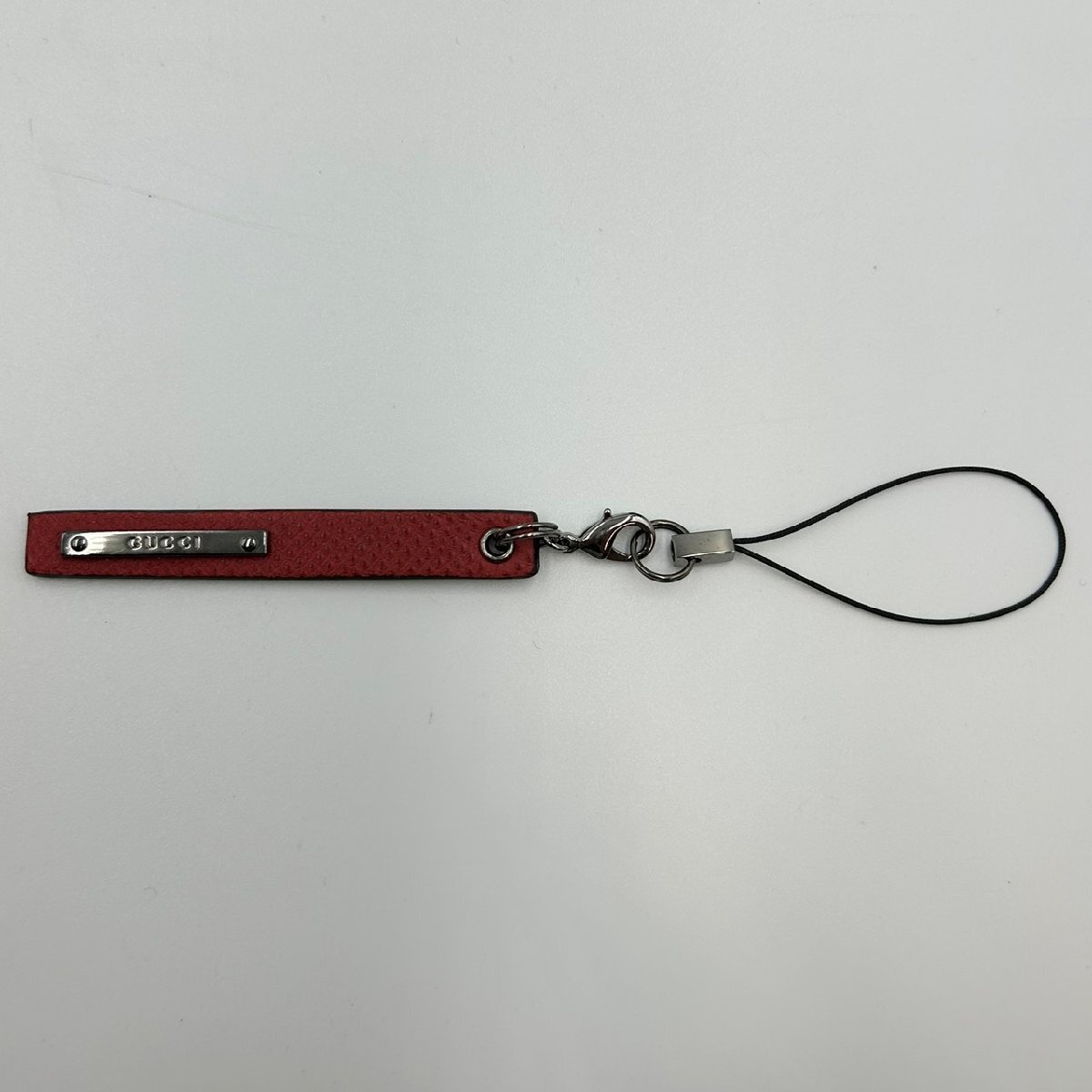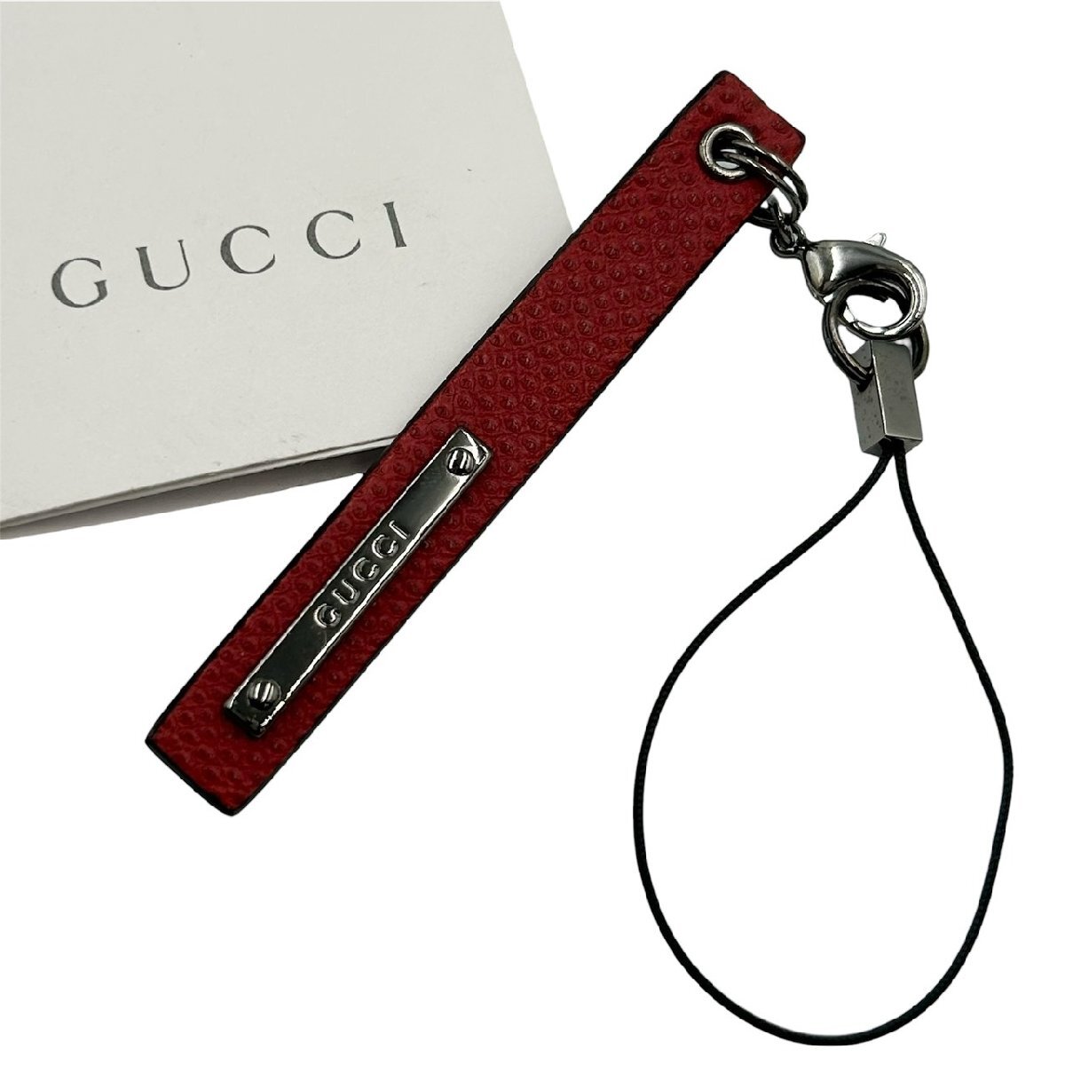 ◆ GUCCI グッチ レザー ストラップ チャーム ボルドー 赤 レッド 革 ロゴ キーホルダー ブランド 小物 中古 MB ha KBA3
