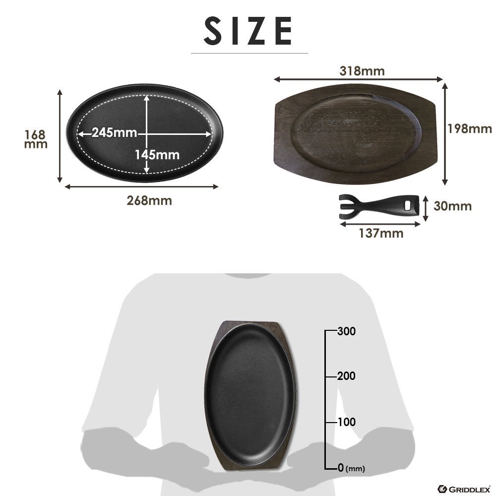 | 商品名 | 業務用 ステーキ皿 楕円 27cm×17cm 2枚セット ハンドル&専用木台付き |