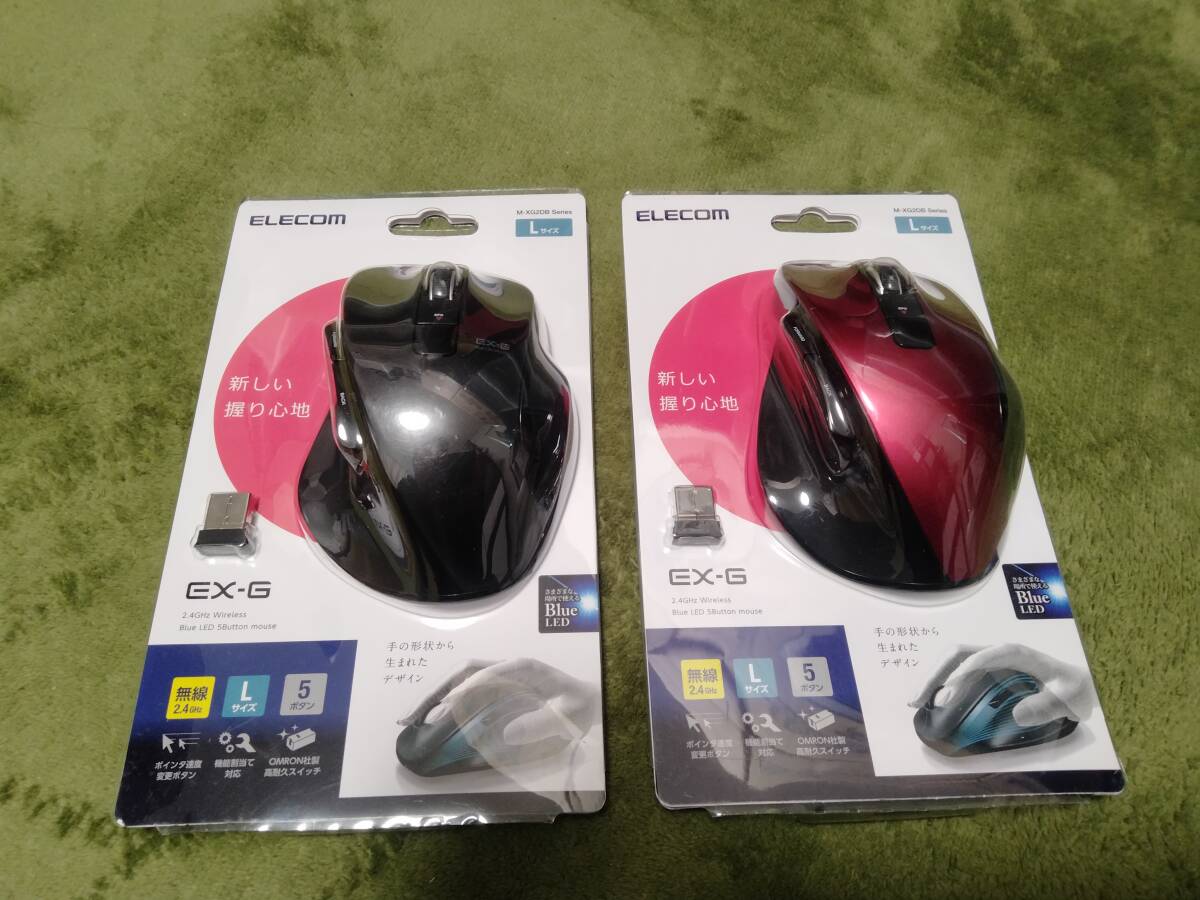 未使用 エレコム ワイヤレス5ボタンBlueLEDマウス EX-G Lサイズ M-XG2DB 2個セット