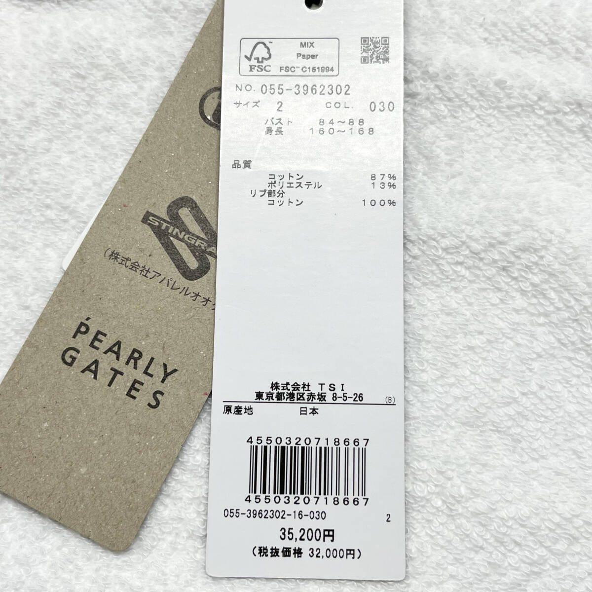 ●○新品未使用 PEARLY GATES(パーリーゲイツ) 吊り裏毛フルジップパーカー 2 ホワイト○●