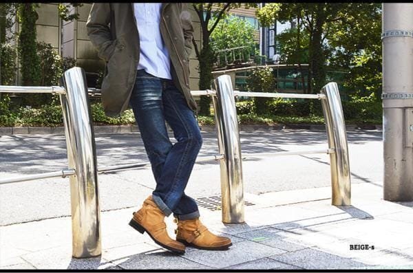 【新品】25cm■エンジニア ドレープブーツ 2way チェック サイドzip ベルト メンズ men's ショート ブーツ ヴィンテージ スエード 男 靴 ze2316