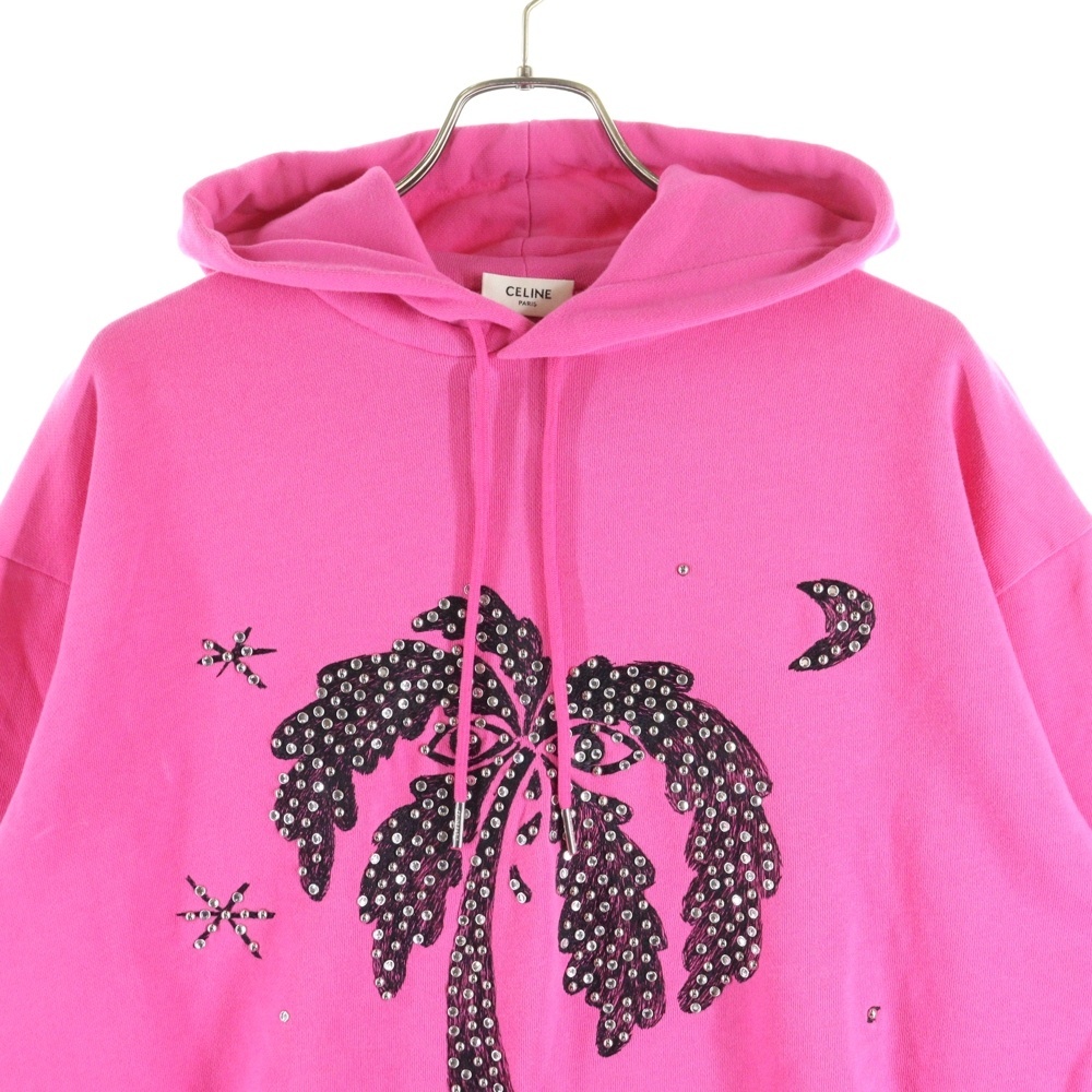 CELINE セリーヌ パームツリー スタッズ フーディー プルオーバーパーカー ピンク 2Y795670Q